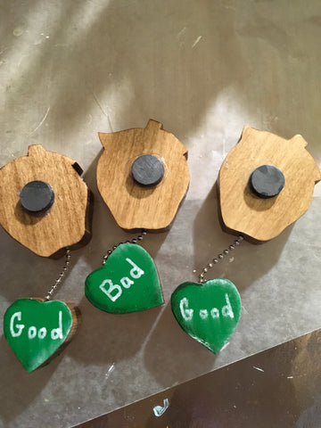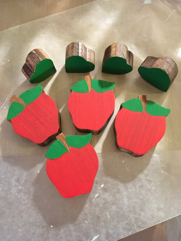 2 Wood Cutouts (Apple and Heart), Magnet, Ball Chain, Painting Instructions, Pattern