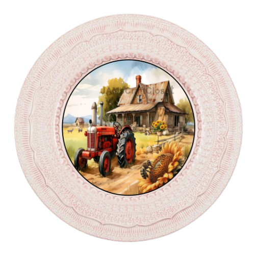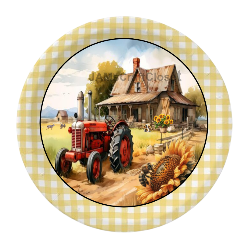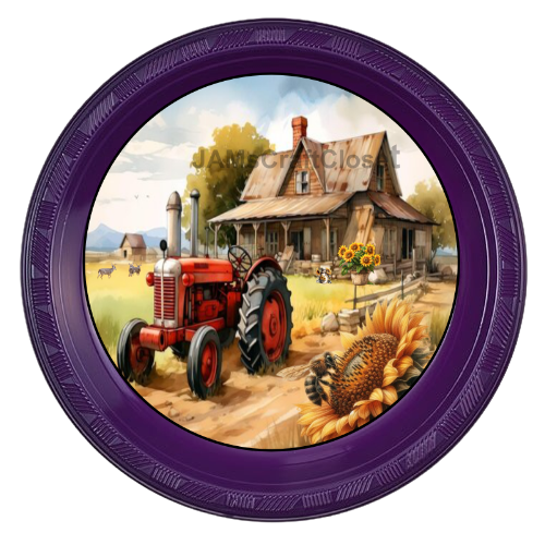 ROUND Digital Graphic Design DEER HOUSE TRACTOR Floral Wedding Gift First Home Sublimation Decoupage PNG SVG Country Farmhouse Home Kitchen Decor Wall Art Shelf Sitter Gift Crafters Delight