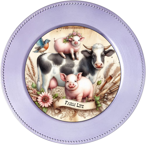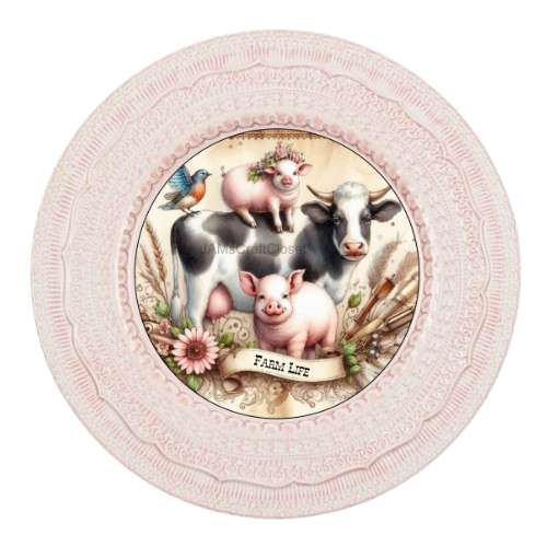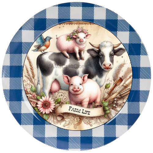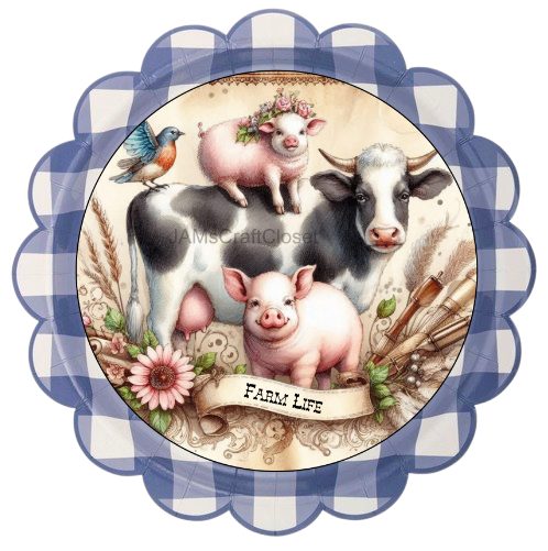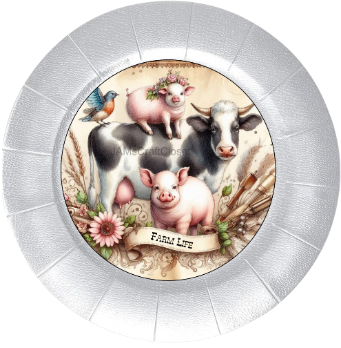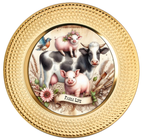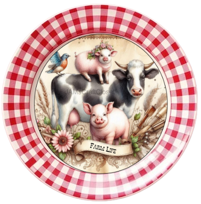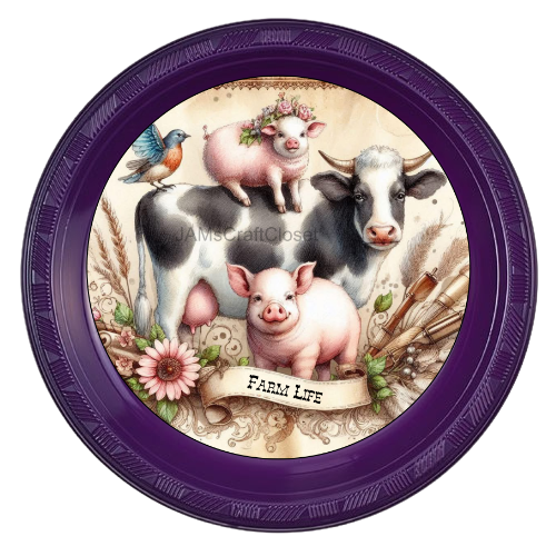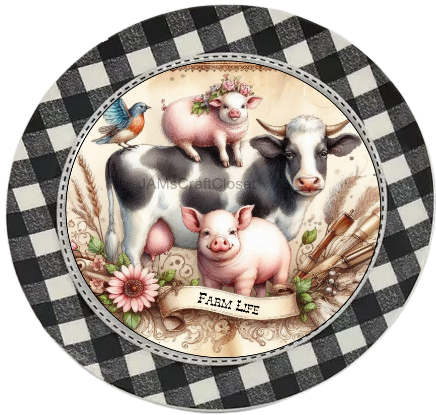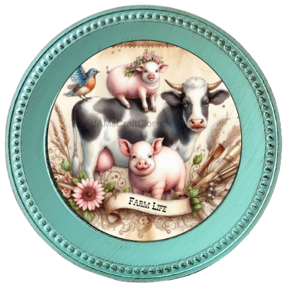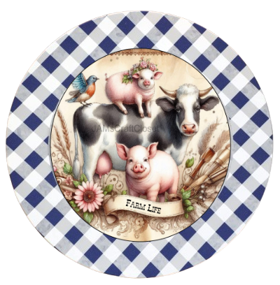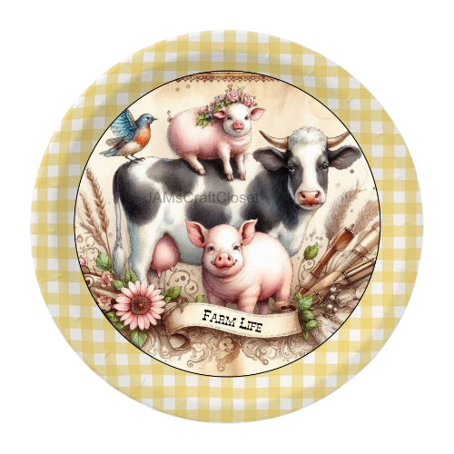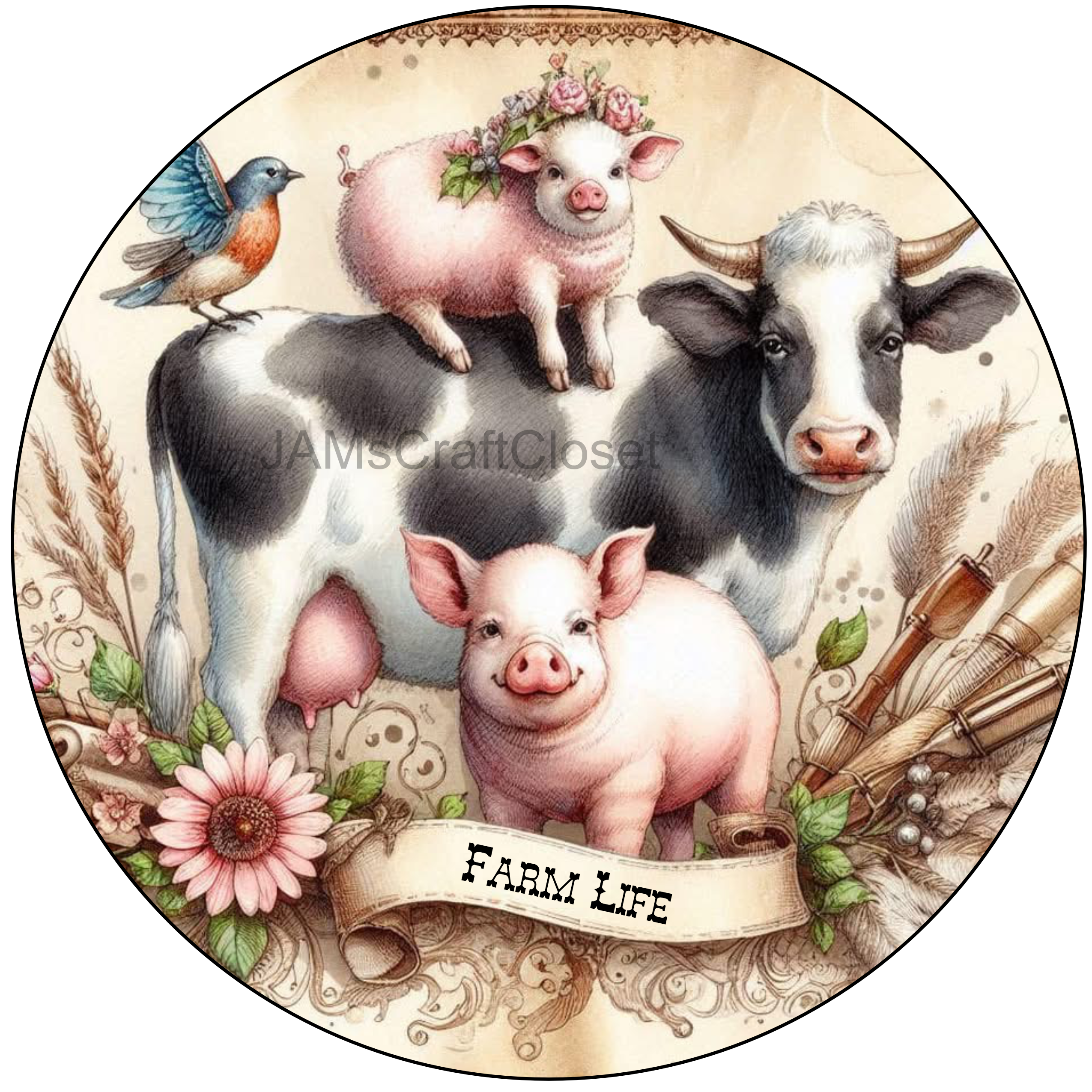 ROUND Digital Graphic Design FARM LIFE - COW PIGS BIRD Floral Wedding Gift First Home Sublimation Decoupage PNG SVG Country Farmhouse Home Kitchen Decor Wall Art Shelf Sitter Gift Crafters Delight - JAMsCraftCloset