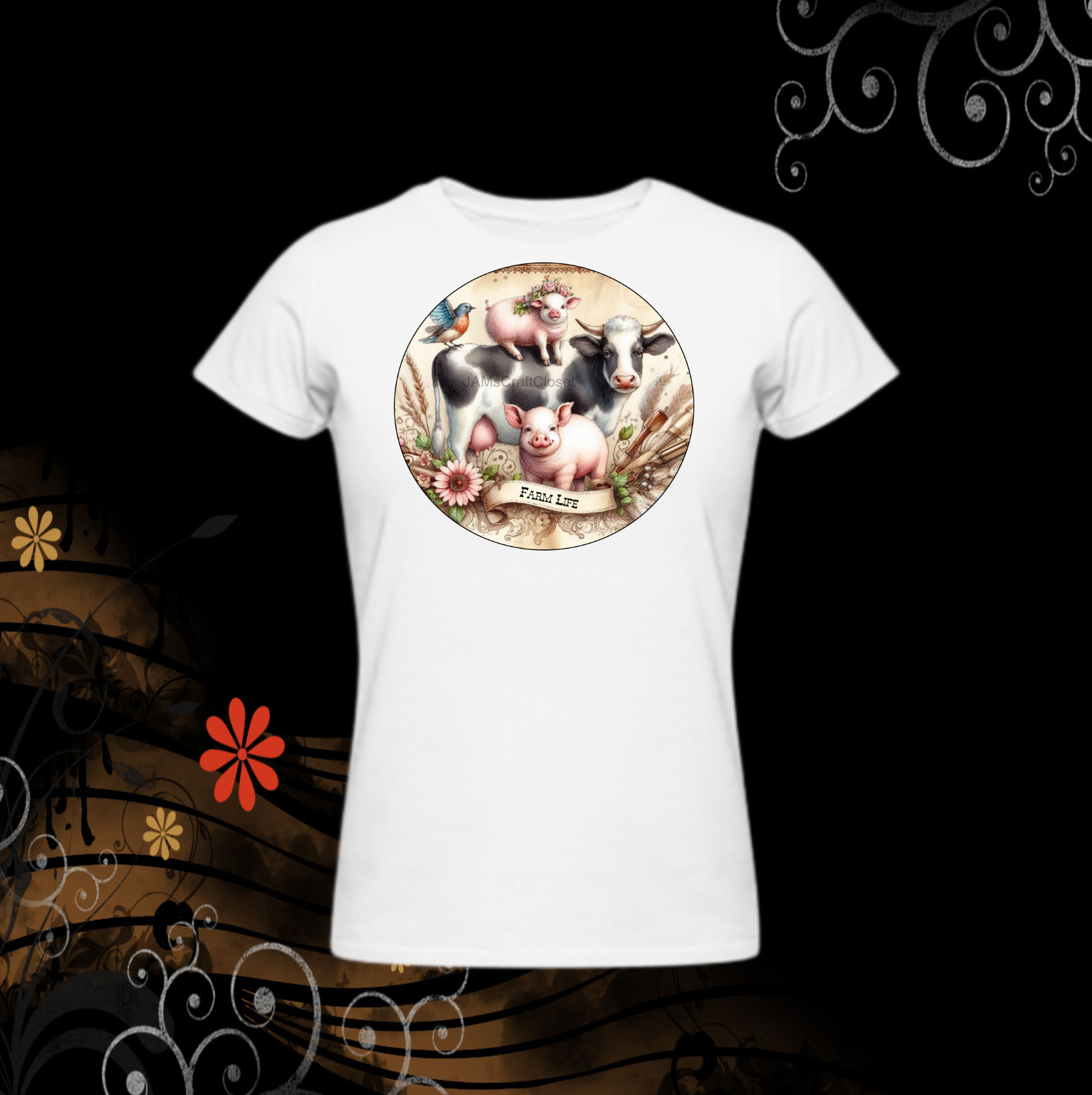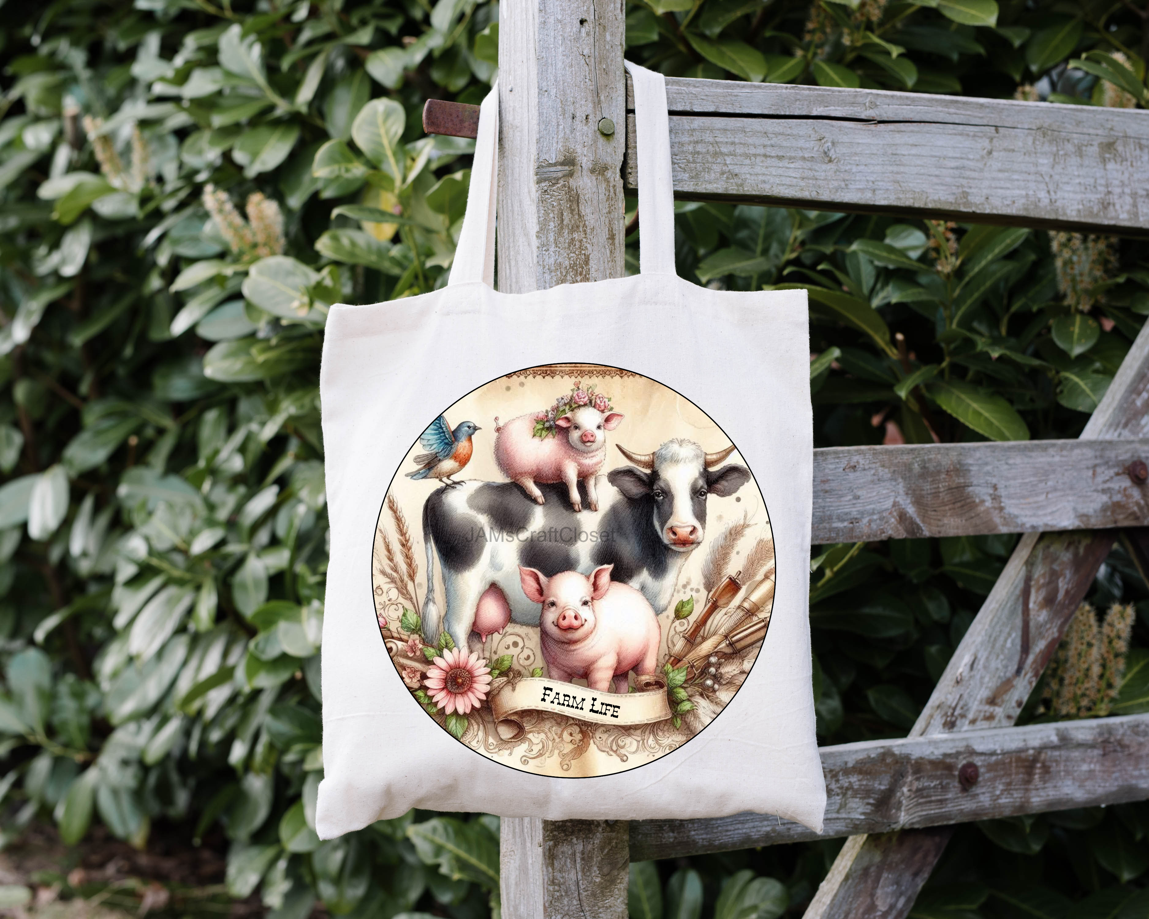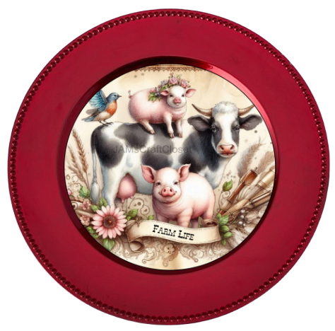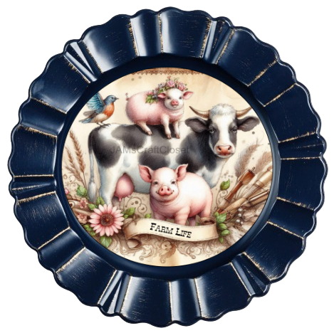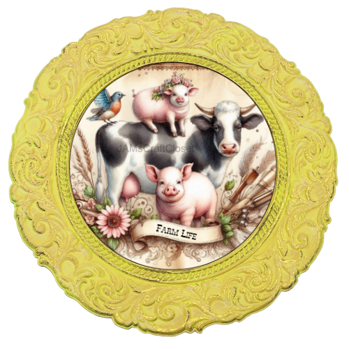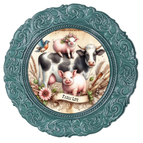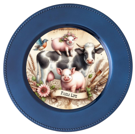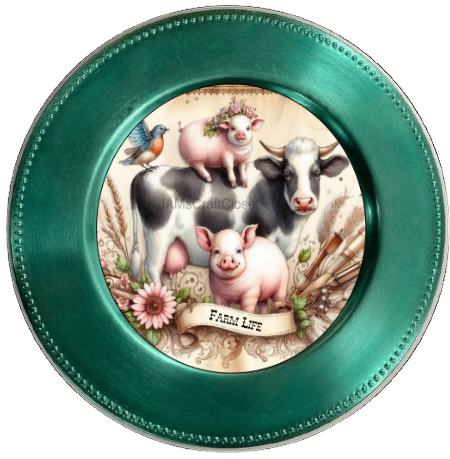 ROUND Digital Graphic Design FARM LIFE - COW PIGS BIRD Floral Wedding Gift First Home Sublimation Decoupage PNG SVG Country Farmhouse Home Kitchen Decor Wall Art Shelf Sitter Gift Crafters Delight - JAMsCraftCloset