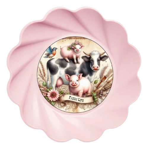ROUND Digital Graphic Design FARM LIFE - COW PIGS BIRD Floral Wedding Gift First Home Sublimation Decoupage PNG SVG Country Farmhouse Home Kitchen Decor Wall Art Shelf Sitter Gift Crafters Delight