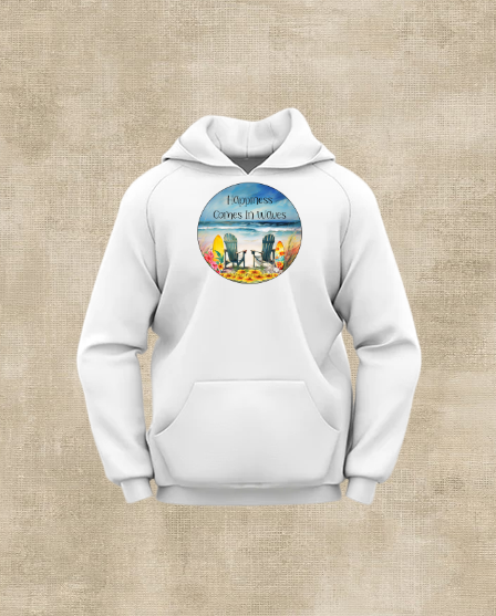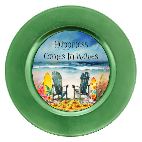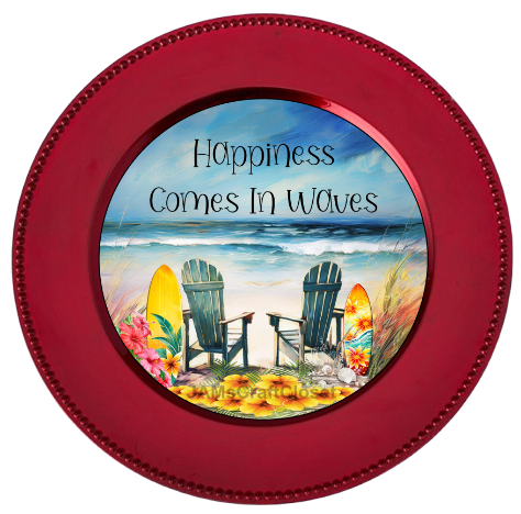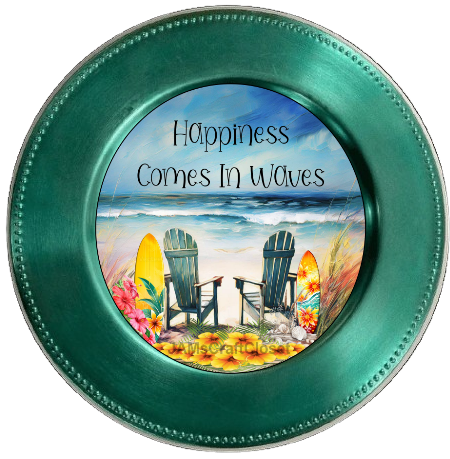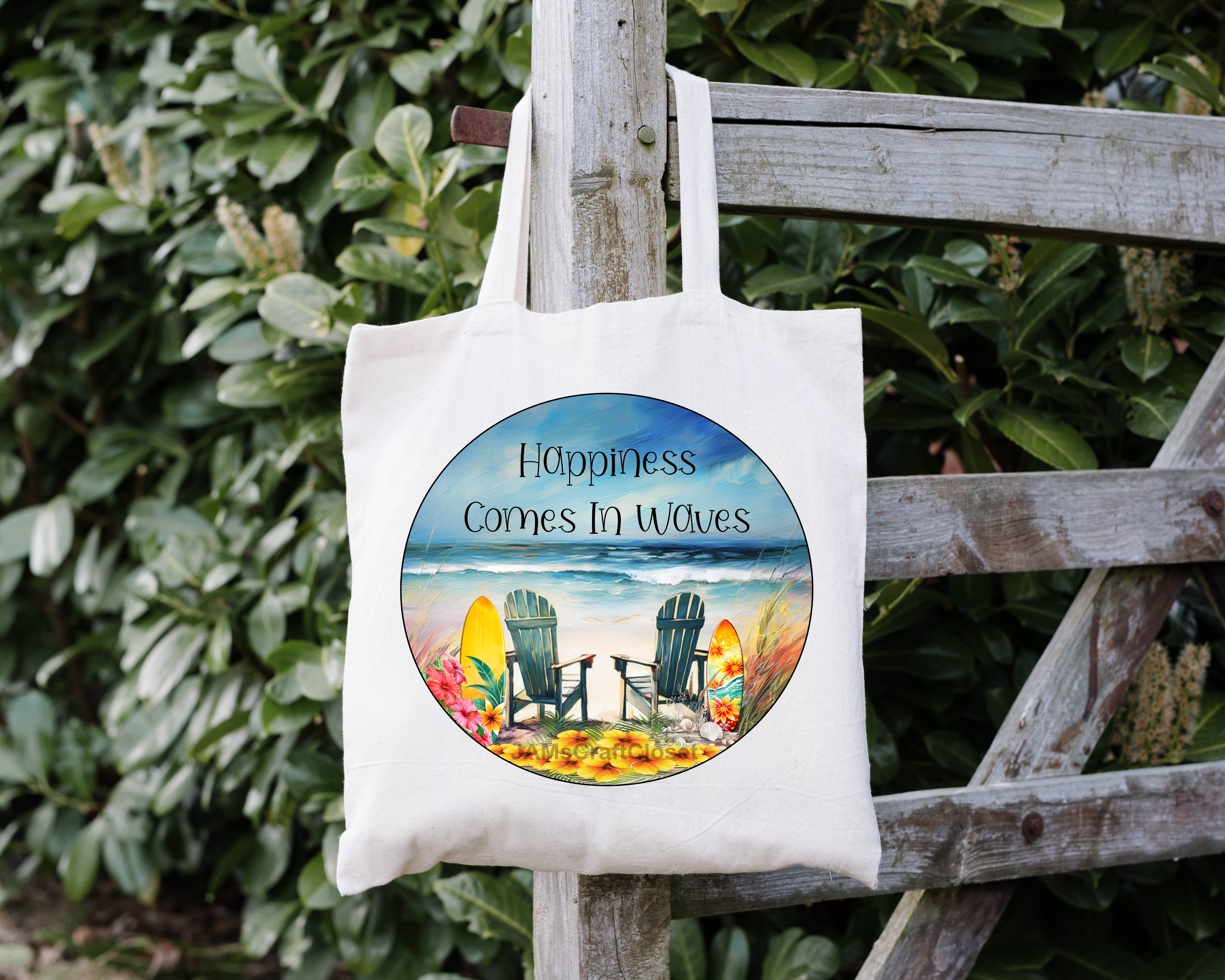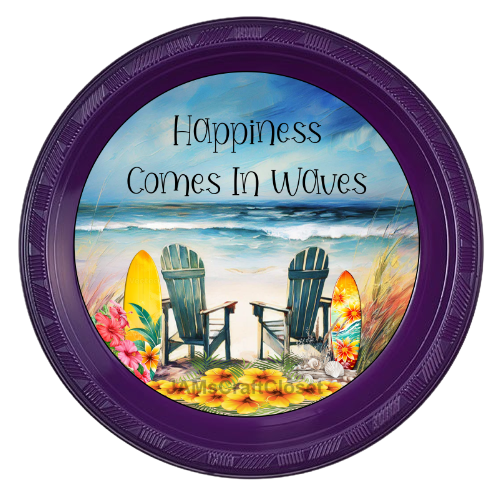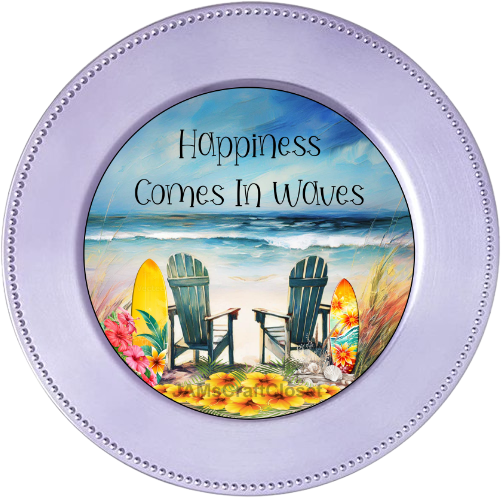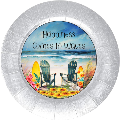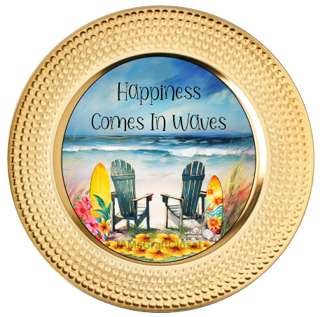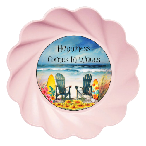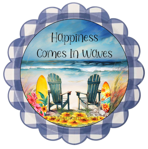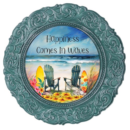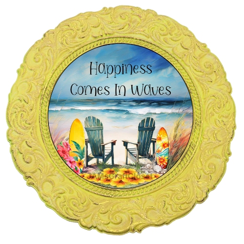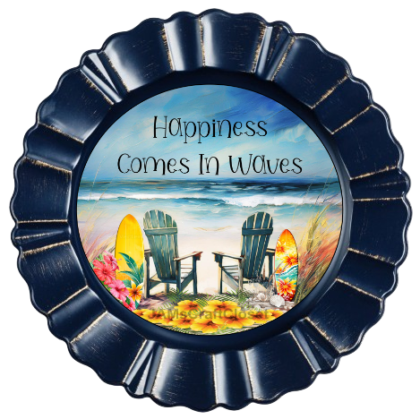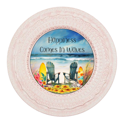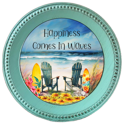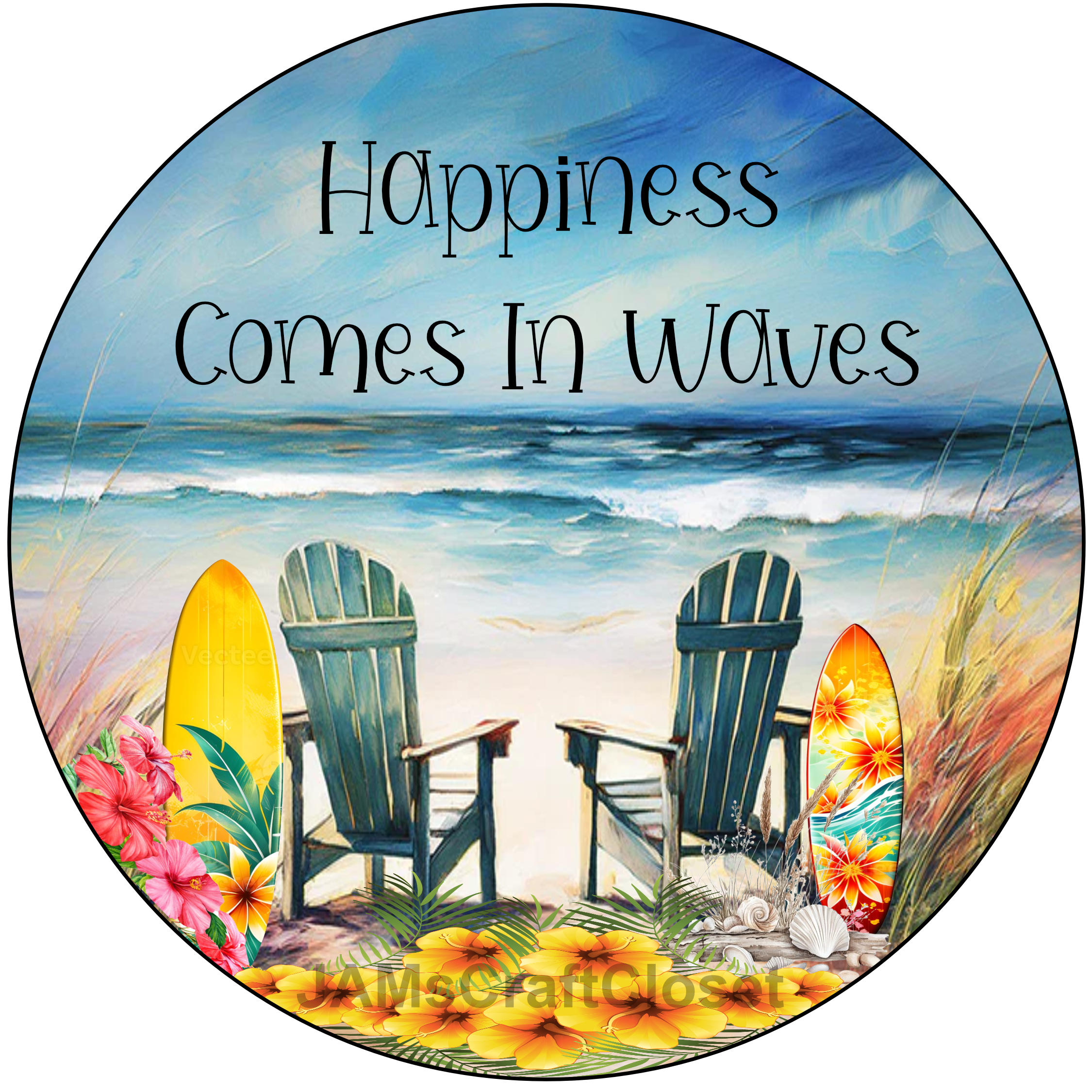 ROUND Digital Graphic Design - HAPPINESS COMES IN WAVES - Wedding Gift HOME DECOR Sublimation Decoupage PNG SVG PDF JPEG BEACH THEME Country Farmhouse Wall Art Shelf Sitter Gift Crafters Delight