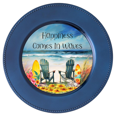 ROUND Digital Graphic Design - HAPPINESS COMES IN WAVES - Wedding Gift HOME DECOR Sublimation Decoupage PNG SVG PDF JPEG BEACH THEME Country Farmhouse Wall Art Shelf Sitter Gift Crafters Delight - JAMsCraftCloset