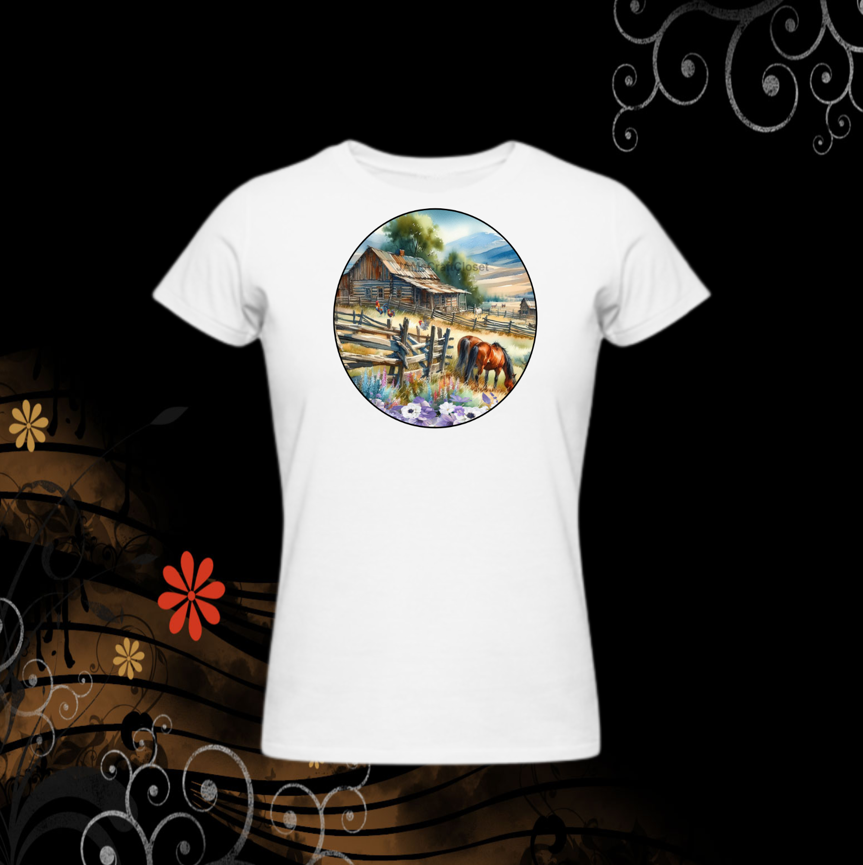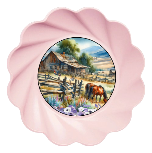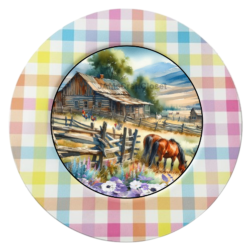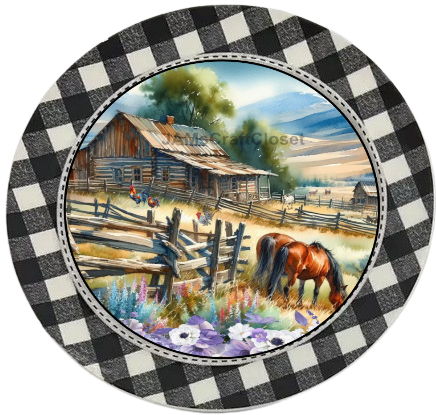 ROUND Digital Graphic Design HOUSE AND HORSES- Farm Scene Floral Wedding Gift First Home Sublimation Decoupage PNG SVG Country Farmhouse Home Kitchen Decor Wall Art Shelf Sitter Gift Crafters Delight