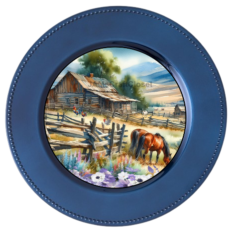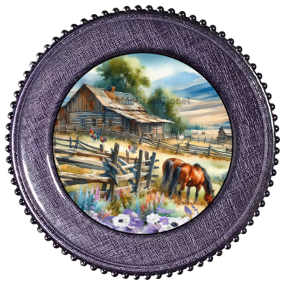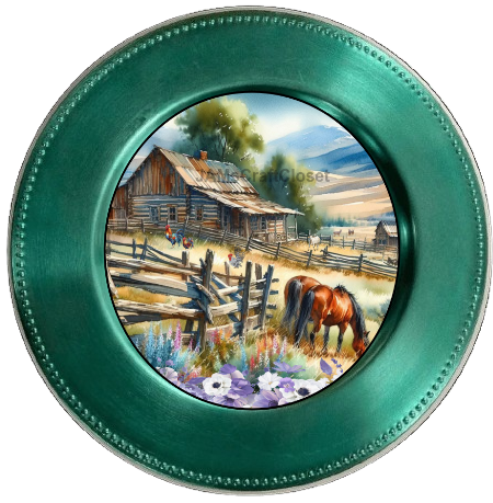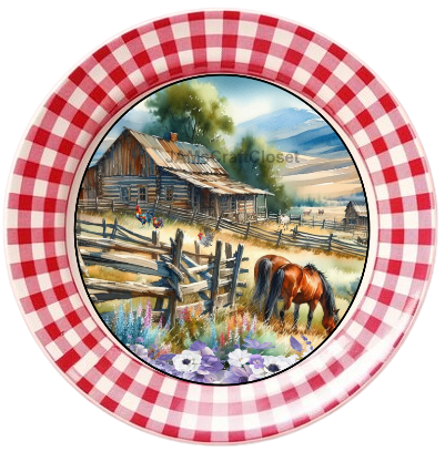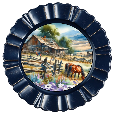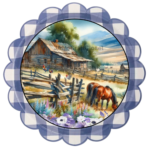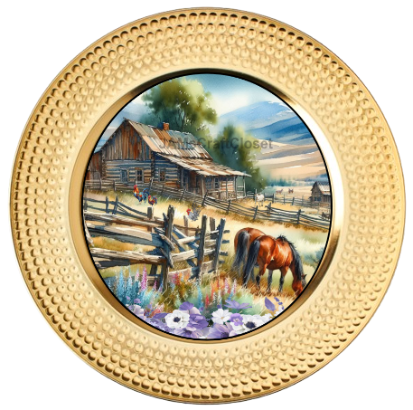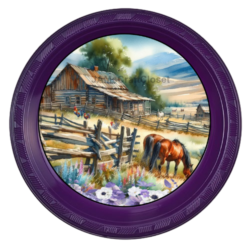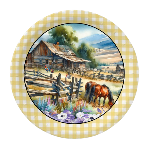 ROUND Digital Graphic Design HOUSE AND HORSES- Farm Scene Floral Wedding Gift First Home Sublimation Decoupage PNG SVG Country Farmhouse Home Kitchen Decor Wall Art Shelf Sitter Gift Crafters Delight - JAMsCraftCloset