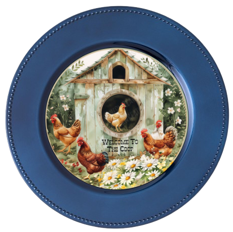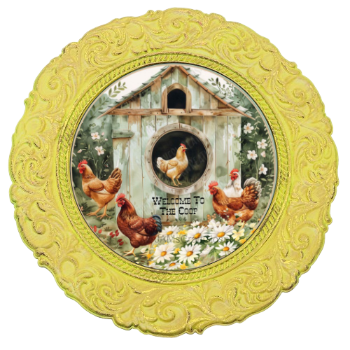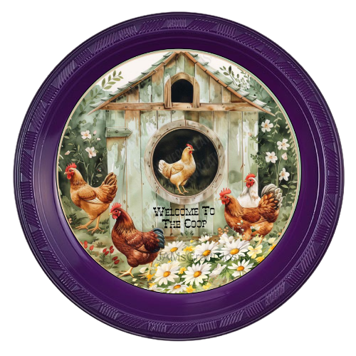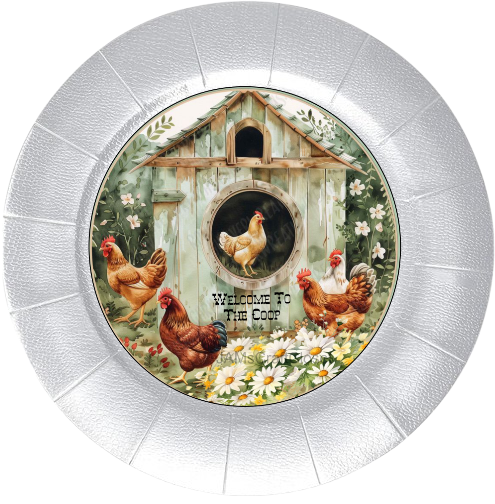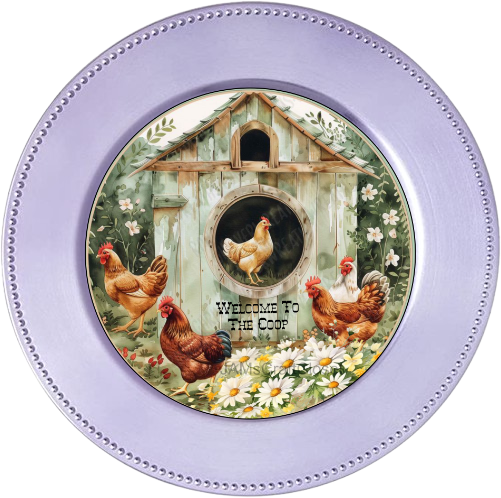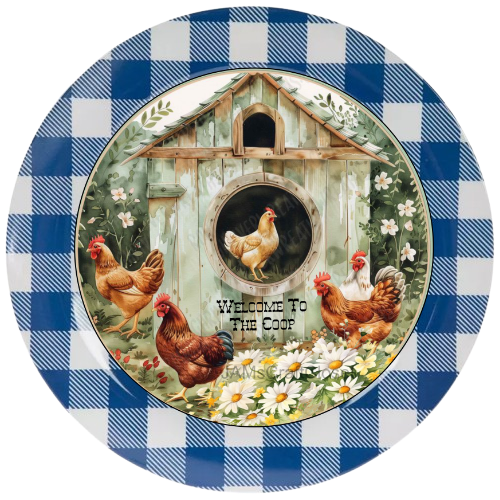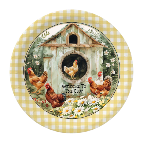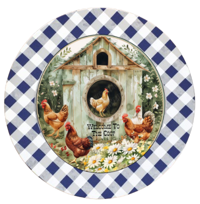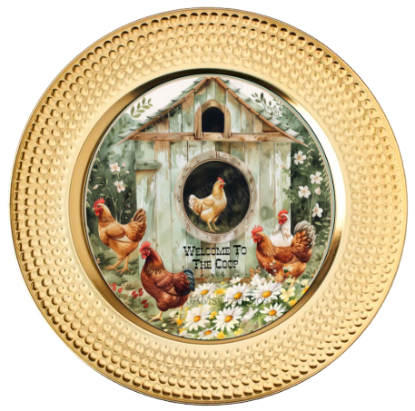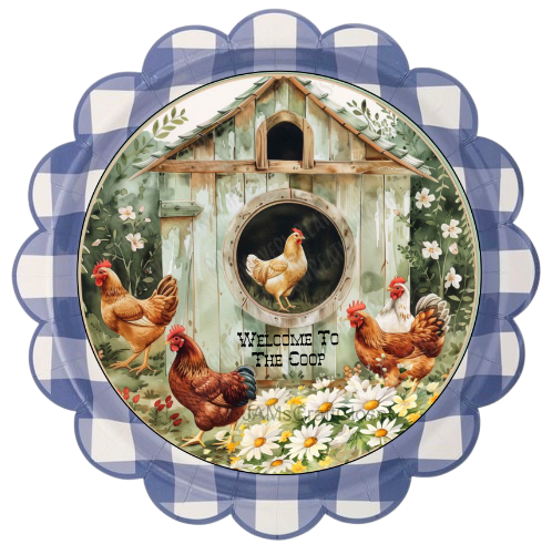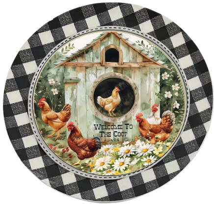 ROUND Digital Graphic Design WELCOME TO THE COOP 3 Rooster Hens Daisies Floral Wedding Gift First Home Sublimation Decoupage PNG SVG Country Farmhouse Home Kitchen Decor Wall Art Shelf Sitter Gift Crafters Delight