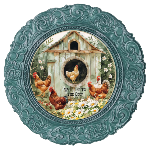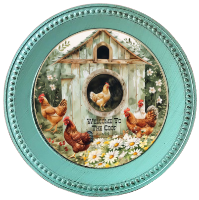 ROUND Digital Graphic Design WELCOME TO THE COOP 3 Rooster Hens Daisies Floral Wedding Gift First Home Sublimation Decoupage PNG SVG Country Farmhouse Home Kitchen Decor Wall Art Shelf Sitter Gift Crafters Delight - JAMsCraftCloset