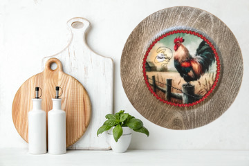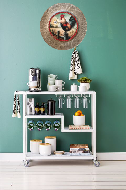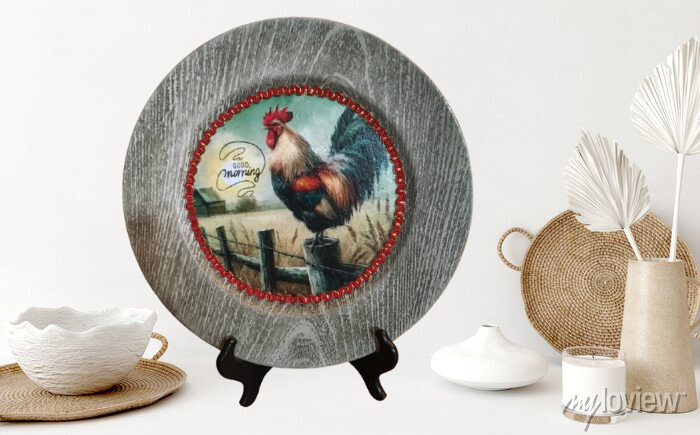 Start your day with a cheerful touch! This charming piece features a proud rooster perched on a fence, exuding a warm "Good Morning" greeting. The vibrant colors of the rooster contrast beautifully with the rustic wooden background, creating a delightful focal point for any space. The intricate red trim adds a playful flair, making it a perfect addition to your kitchen or dining area. Bring a bit of country charm into your home and let this artwork inspire your mornings!