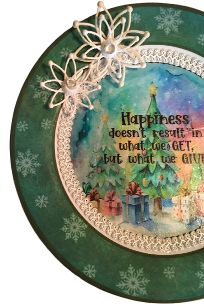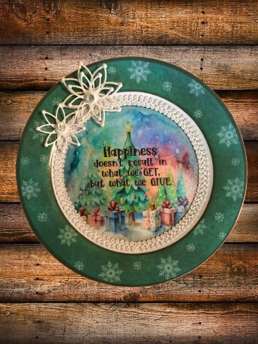 PLATE PLASTIC ROUND Christmas DECOUPAGED Upcycled Repurposed Wall Art or Shelf Sitter HAPPINESS DOESN'T RESULT IN WHAT WE GET Holiday Home Decor Gift - JAMsCraftCloset