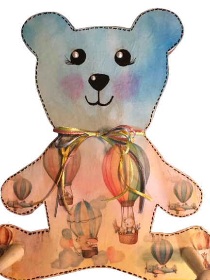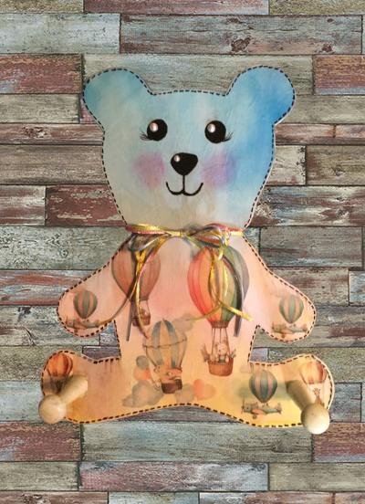 Wood Peg Bear - Hot Air Balloon Design - Child's Room or Nursery Decor - Decoupage - Wall Art - Storage - Gift Idea - JAMsCraftCloset