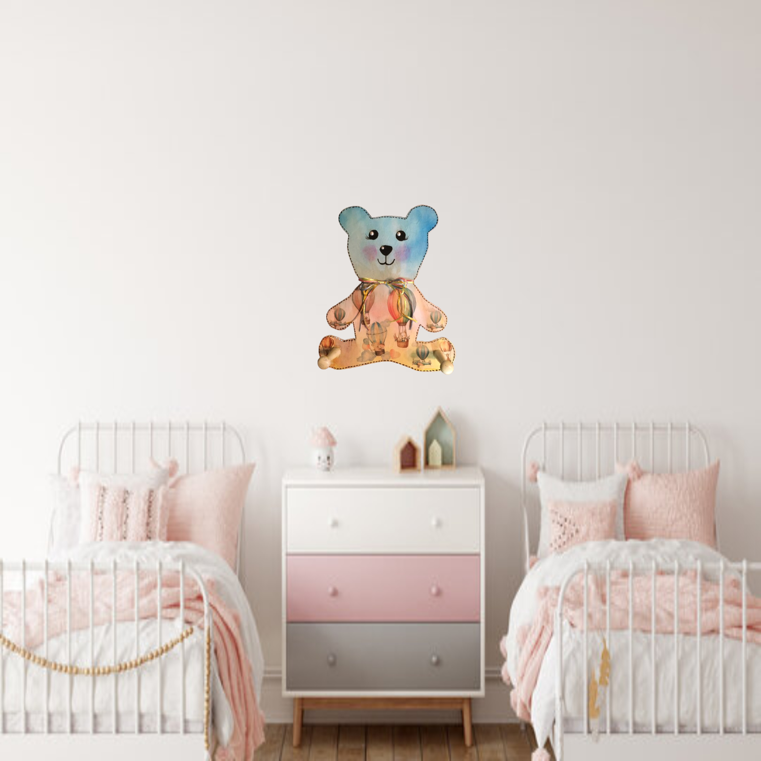Meet the Balloon Bear Hook, a delightful fusion of charm and practicality. This whimsical piece showcases a playful bear adorned with colorful hot air balloons, instantly brightening any room. With its cheerful expression and vibrant hues, it serves not only as a functional hook for coats, bags, or accessories but also as a delightful conversation starter. Perfect for adding a touch of joy to your home, this piece effortlessly combines organization with a playful spirit, making it a wonderful addition to your space.