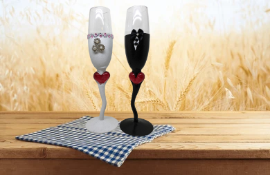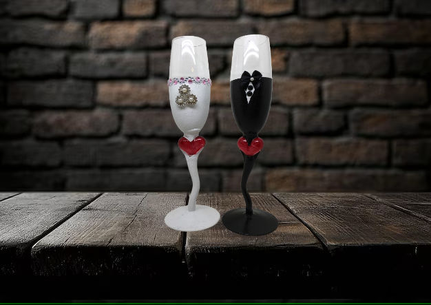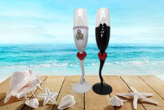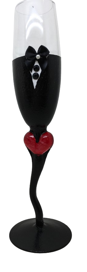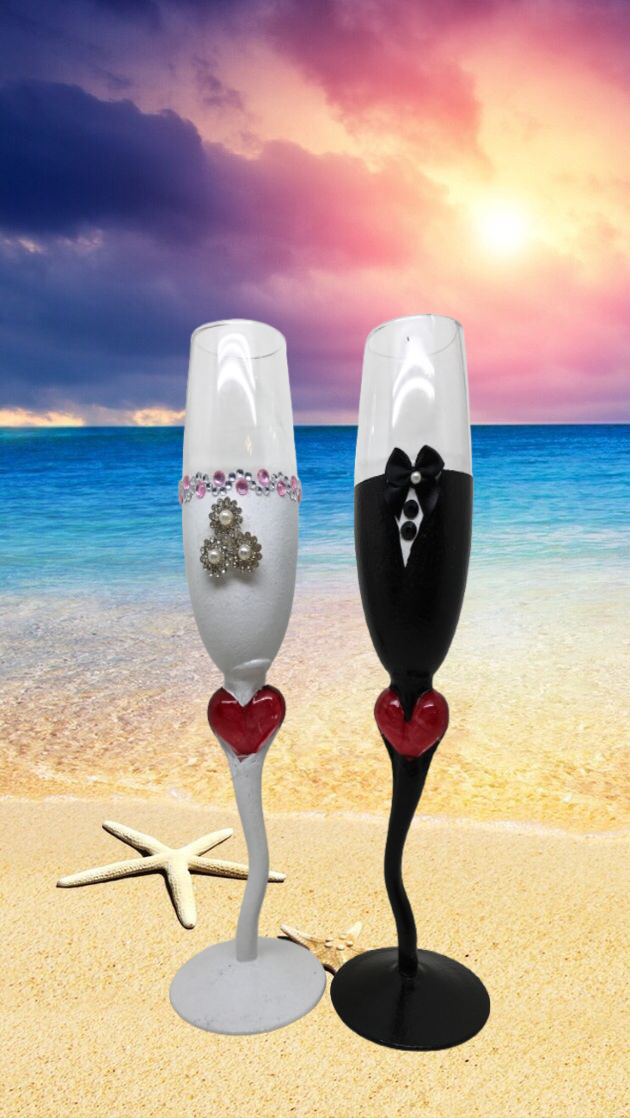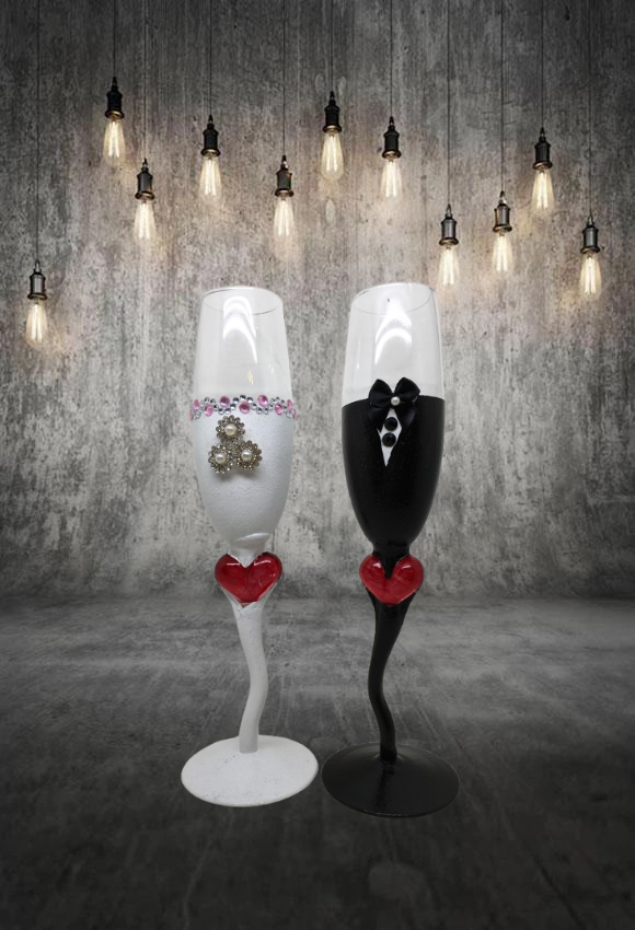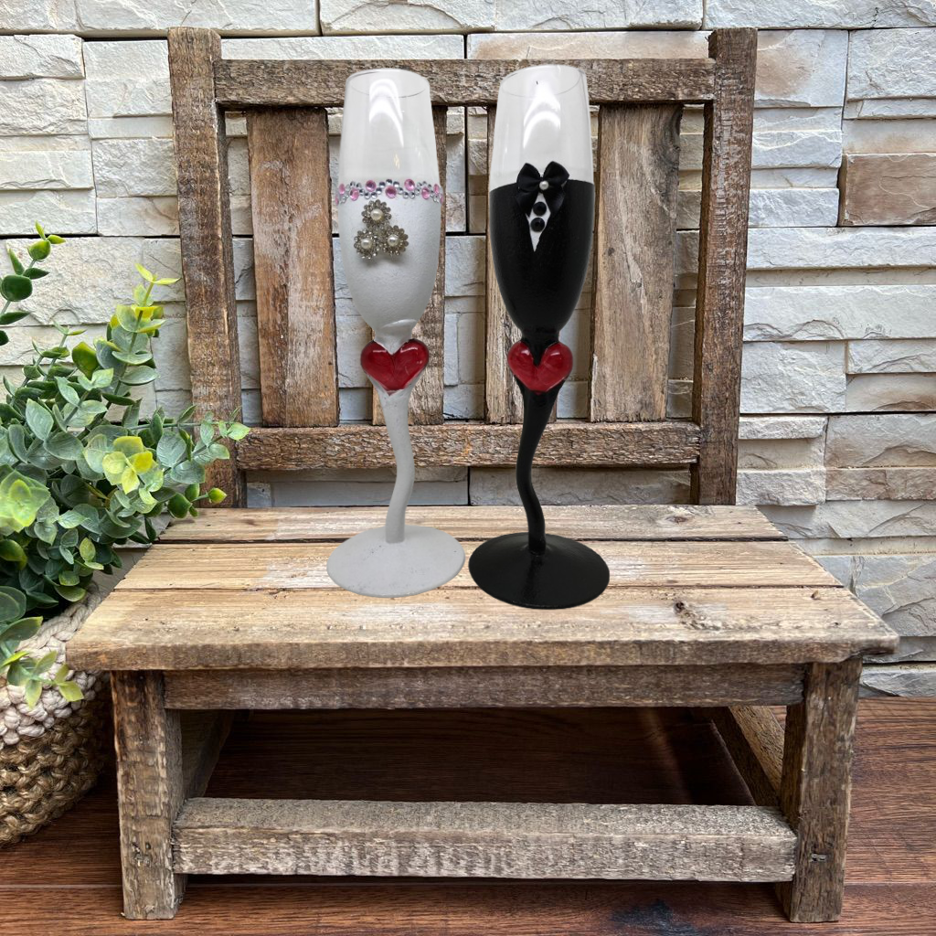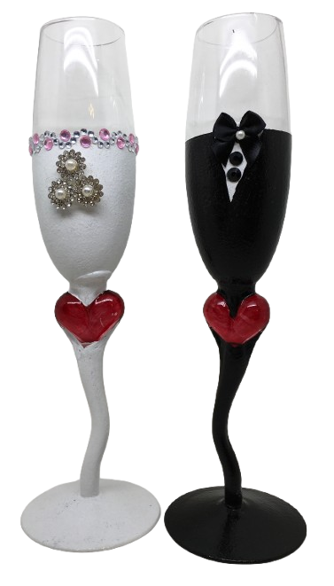 Stemware Glasses BRIDE and GROOM Champagne Toasting Glasses WEDDING Hand Painted Black and White With Bling and Heart Barware Bar Decor Drinkware Kitchen Decor Country Decor Gift One of a Kind - JAMsCraftCloset