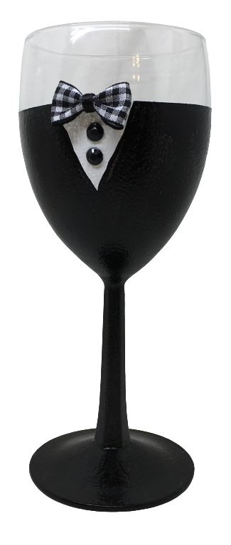 Stemware Glasses BRIDE and GROOM WINE Toasting Glasses WEDDING Hand Painted Black and White With Bling, Rose. Plaid Tie - JAMsCraftCloset