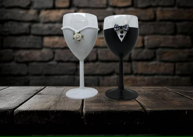 Celebrate your special day with "Tuxedo & Bridal Toasts," a charming artwork that beautifully captures the essence of wedding joy. This delightful pair of glasses features the bride's glass adorned with delicate pearl trim and a floral accent, while the groom's glass showcases a stylish tuxedo design. Perfect for toasting to love and new beginnings, these unique pieces enhance your wedding decor and serve as lasting reminders of cherished moments. Add this enchanting artwork to your collection and let it bring a touch of elegance to your space for years to come.