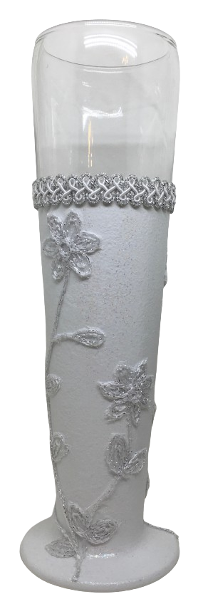 SIZE: 9 1/2 Inches Tall, and 8 1/2 Inches in Diameter...This glass can hold approximately 6 ounces of liquid with some room left at the top of the glass.