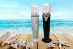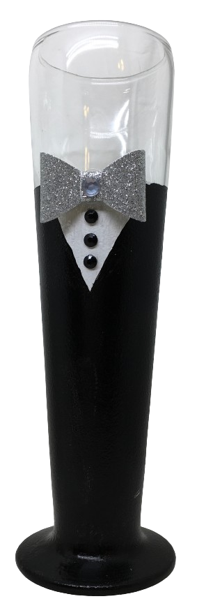 BRIDE and GROOM BEER Toasting Glasses WEDDING Hand Painted Black and White With Bling, Lace, and Silver Glitter Tie - JAMsCraftCloset