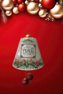 Glass BELL Decoupaged PEACE Christmas Holiday Decor Upcycled Repurposed Light Globes Shelf Sitter Shabby Chic Victorian BoHo Decor Gift Idea