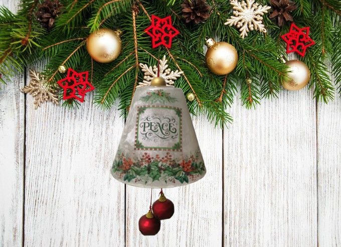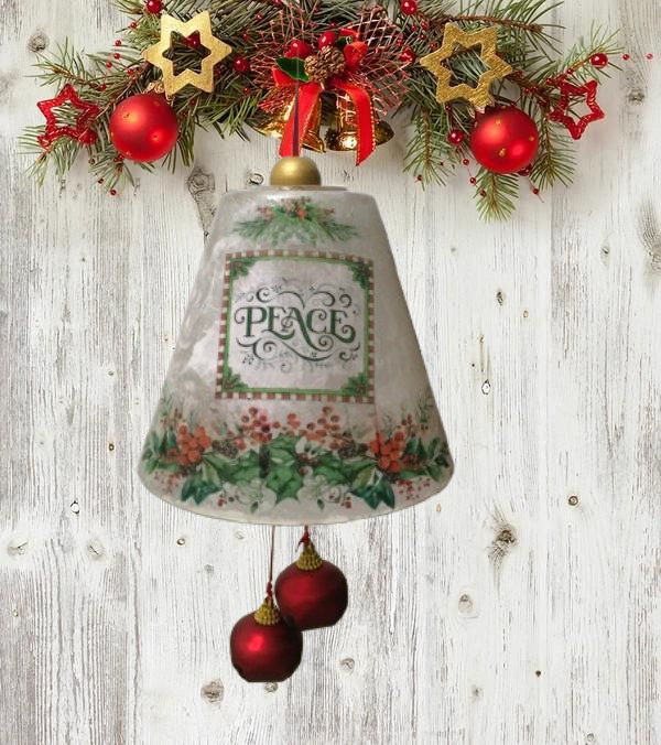 Glass BELL Decoupaged PEACE Christmas Holiday Decor Upcycled Repurposed Light Globes Shelf Sitter Shabby Chic Victorian BoHo Decor Gift Idea - JAMsCraftCloset