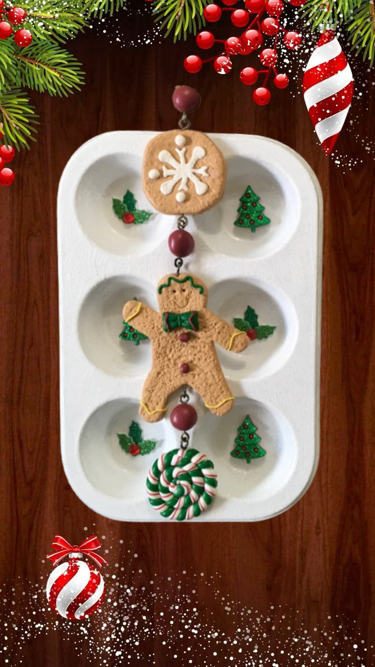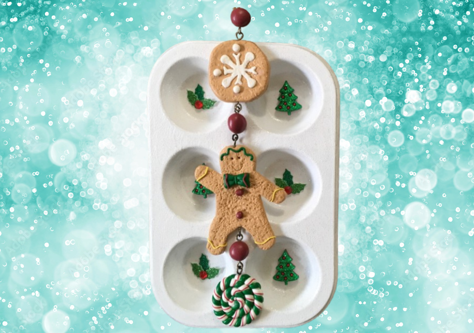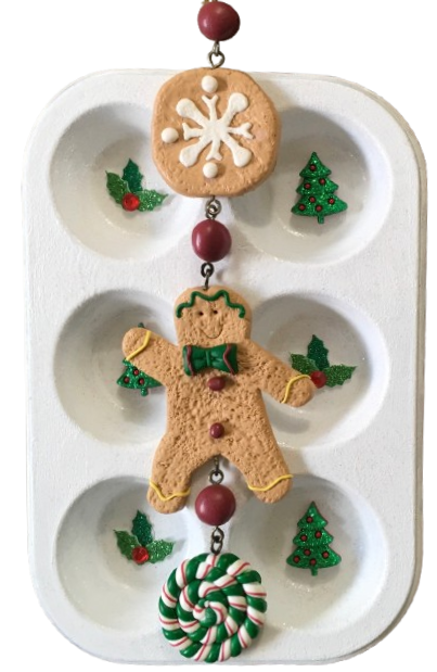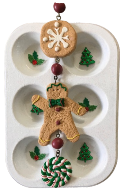 Rectangle MINI MUFFIN Tin Small Repurposed-Upcycled GINGERBREAD MAN Christmas Decor Holiday Decor Country Farmhouse Home Decor Wall Art Shelf Sitter Handmade Hand Painted Gift Idea - JAMsCraftCloset