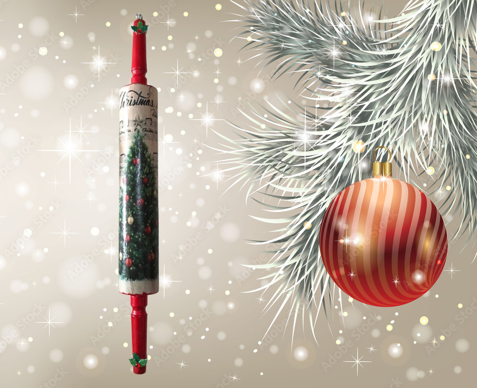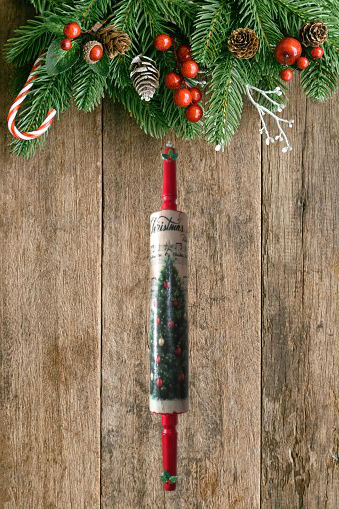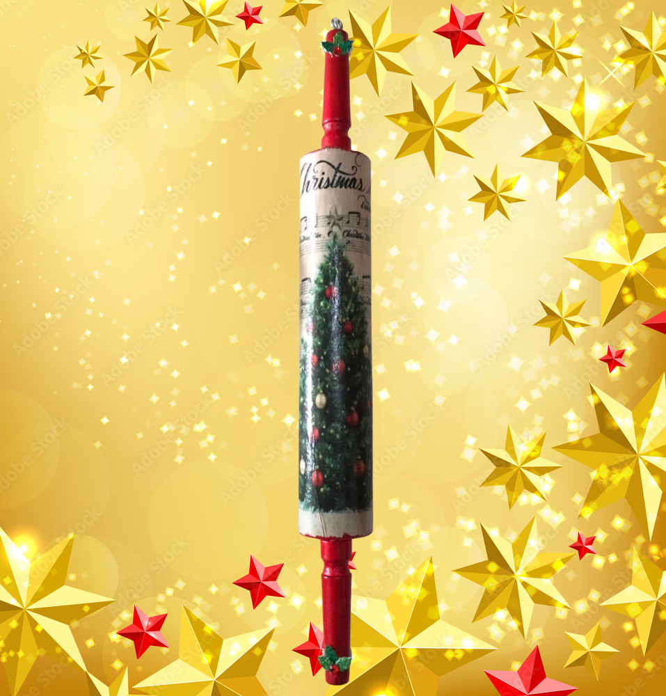 Rolling Pin Hand Painted Decoupaged CHRISTMAS Country Farmhouse Decor O'CHRISTMAS TREE Kitchen Decor Gift Idea - JAMsCraftCloset
