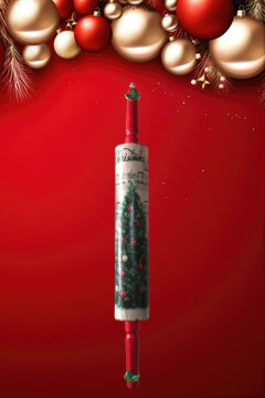 Rolling Pin Hand Painted Decoupaged CHRISTMAS Country Farmhouse Decor O'CHRISTMAS TREE Kitchen Decor Gift Idea