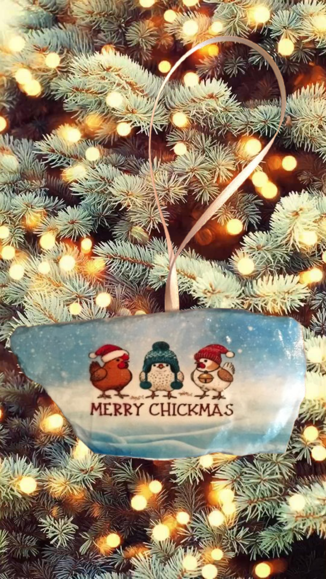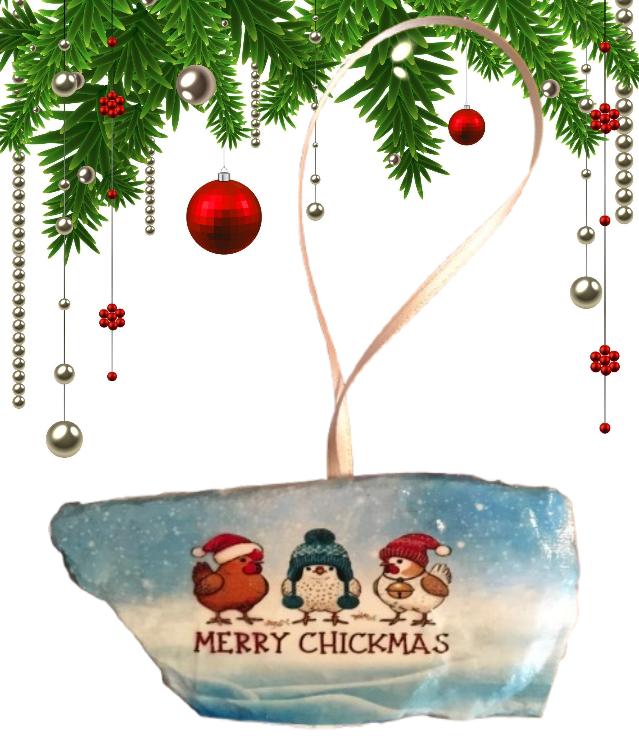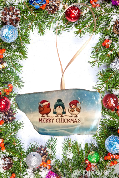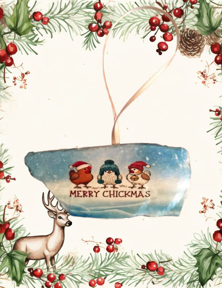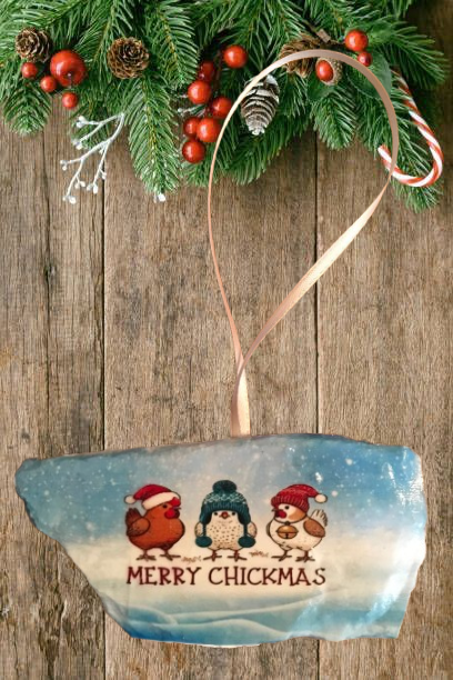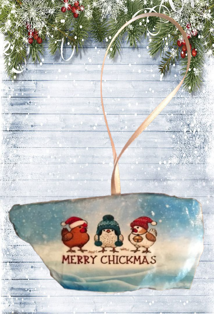 Antique West Virginia Roof Decoupaged Christmas Ornament - 3 CHICKENS MERRY CHRISTMAS- Handmade Holiday Tree Decor Unique Country Farmhouse House Decor Gift