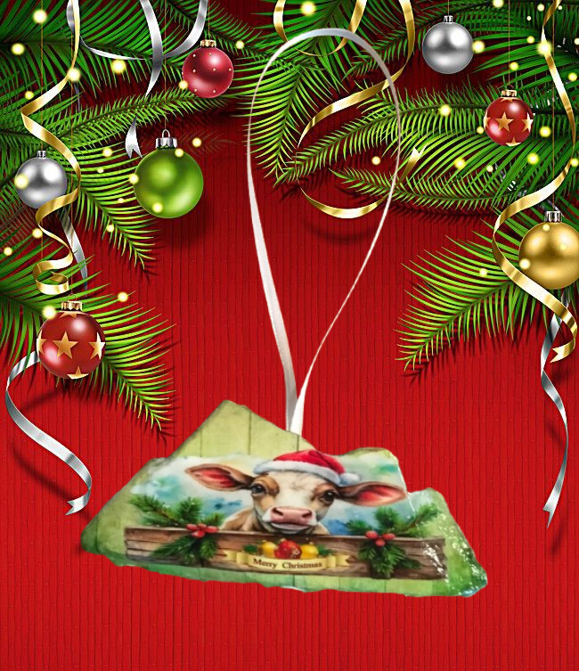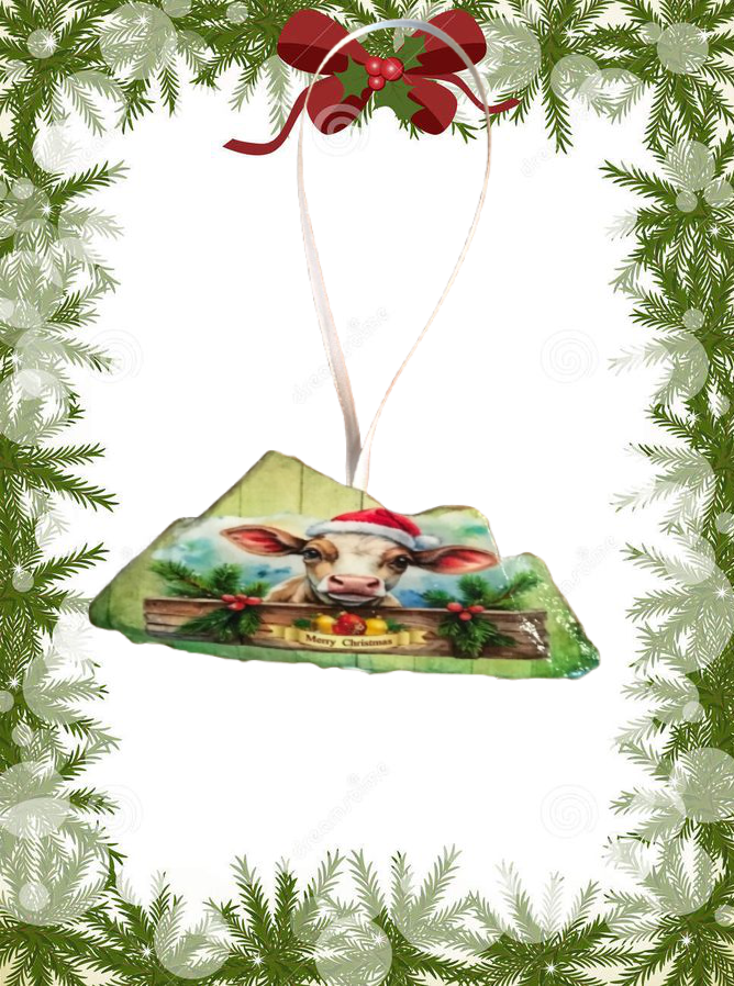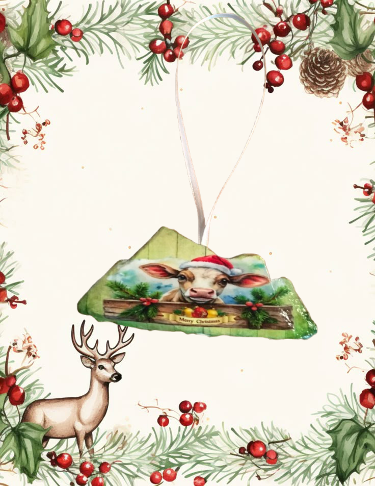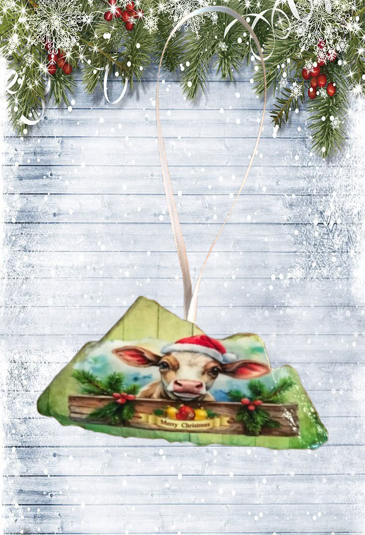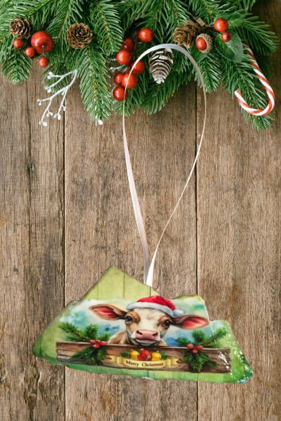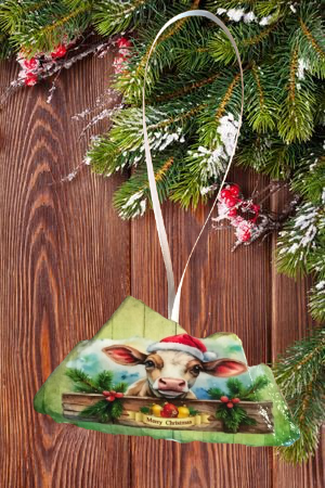 Antique West Virginia Roof Decoupaged Christmas Ornament - COW MERRY CHRISTMAS- Handmade Holiday Tree Decor Unique Country Farmhouse House Decor Gift