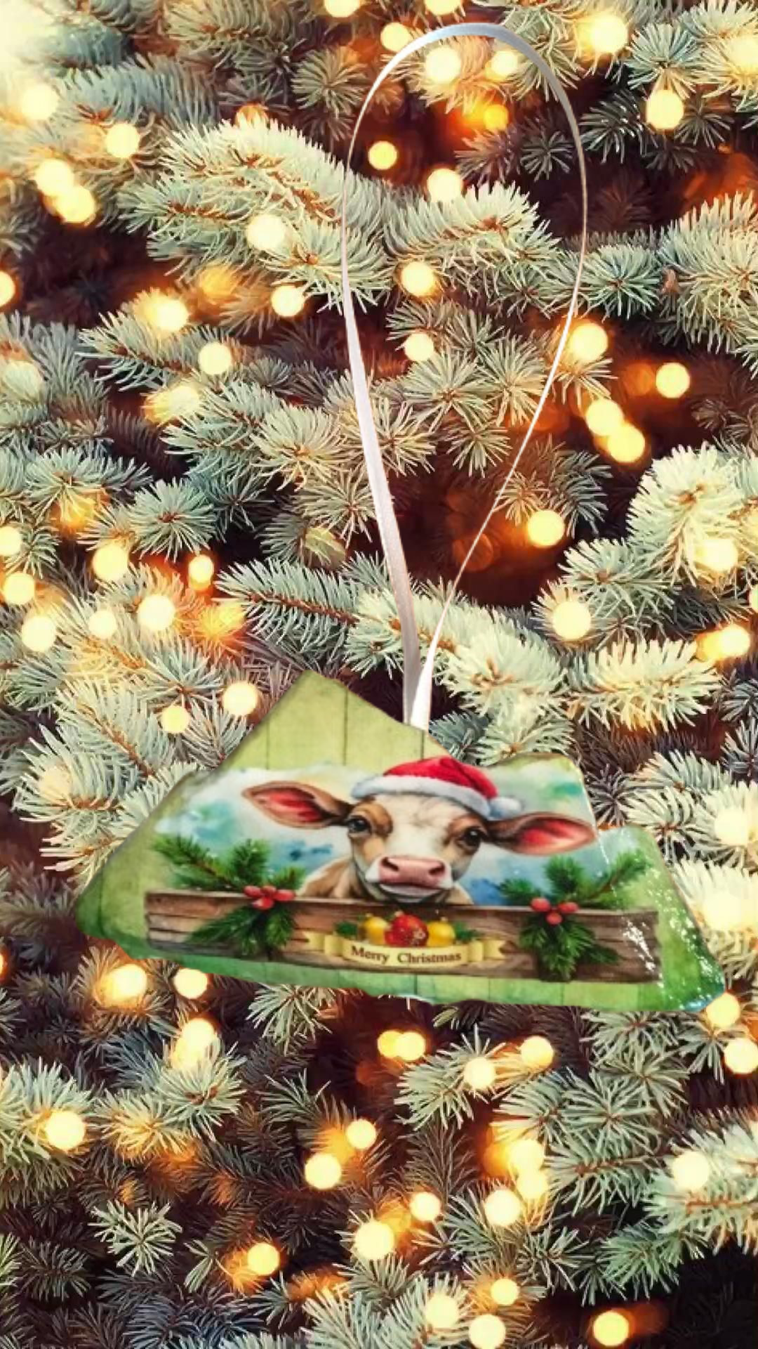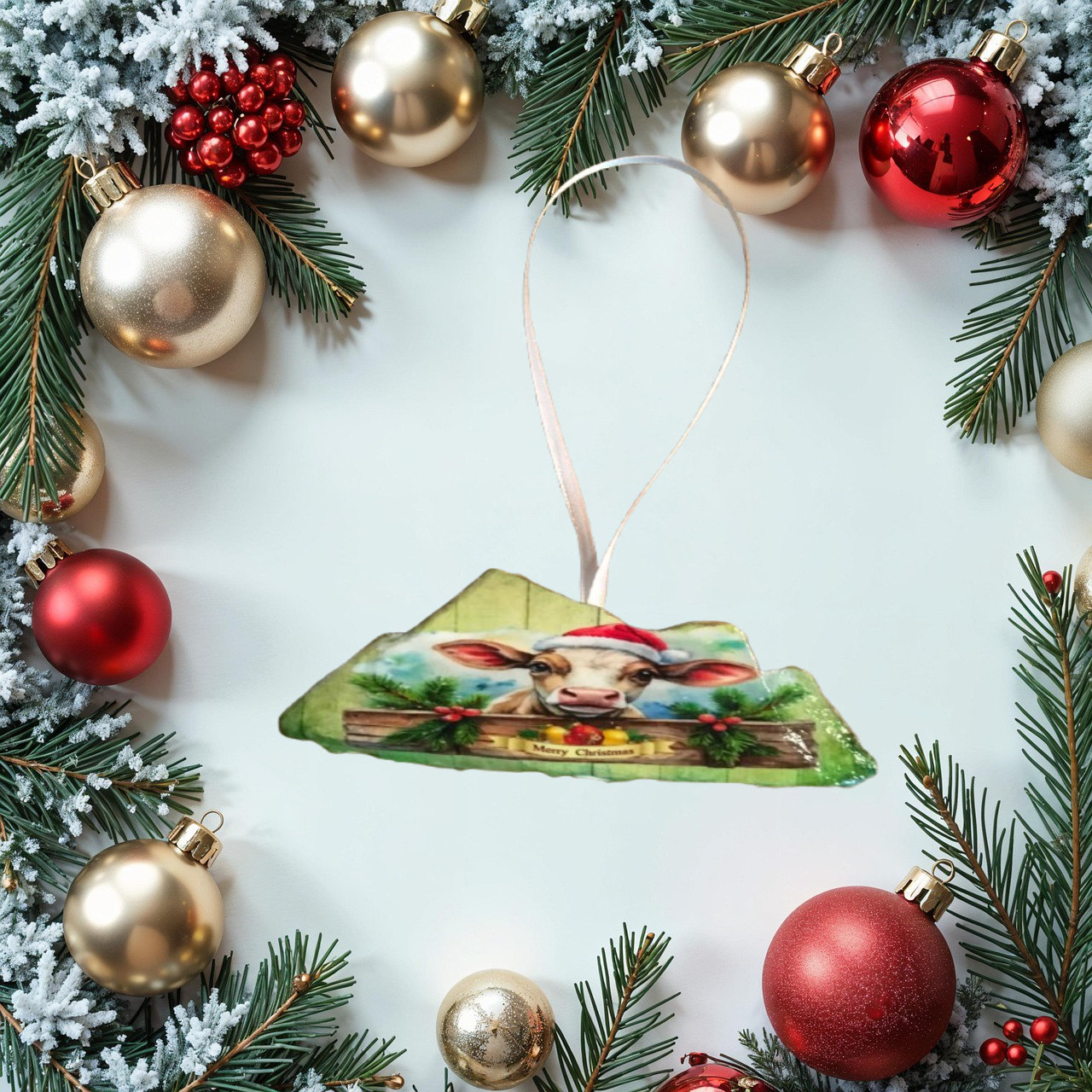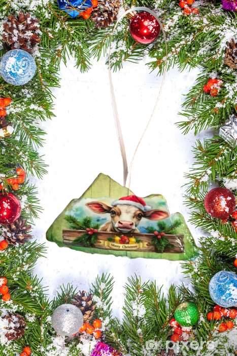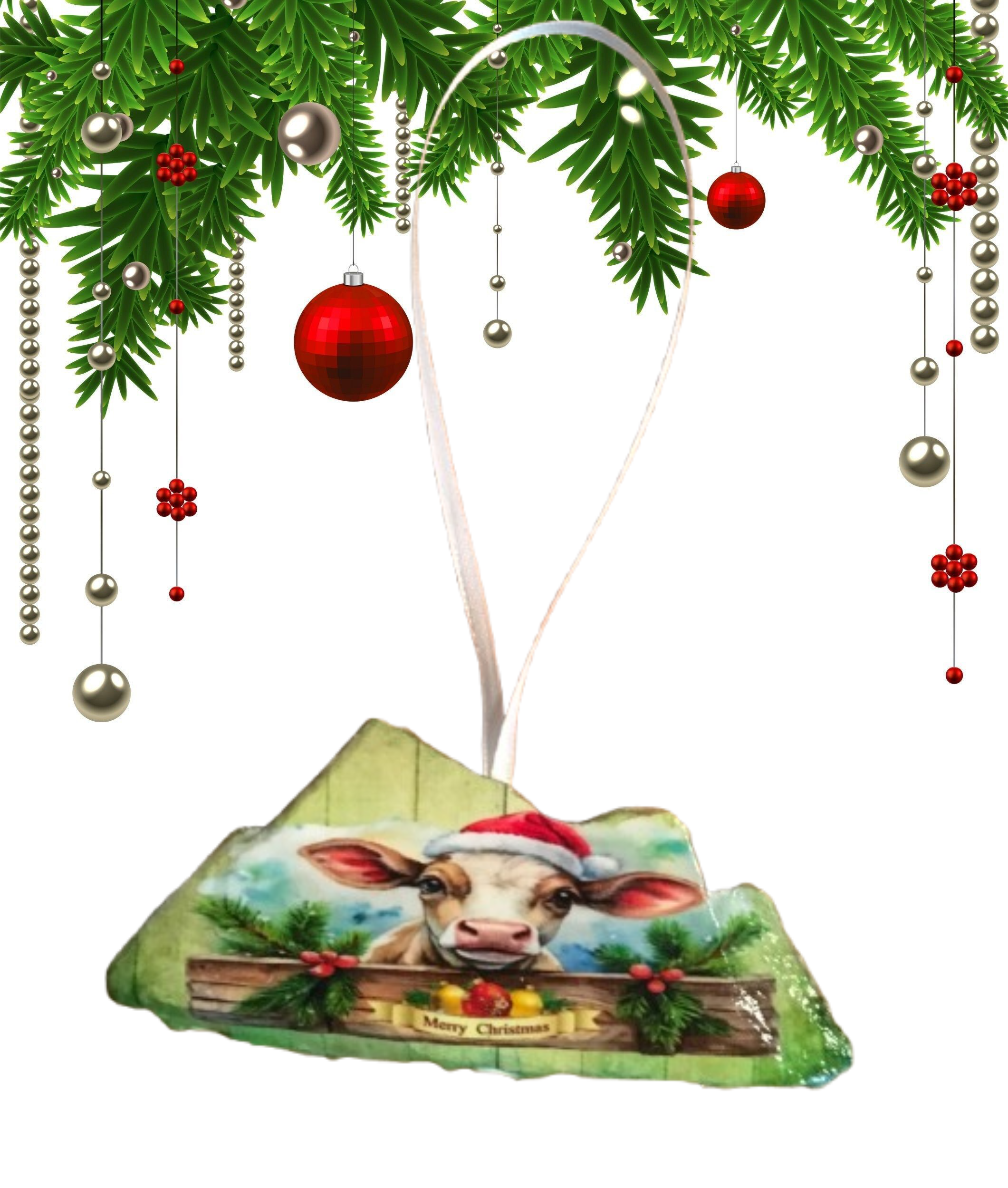 Antique West Virginia Roof Decoupaged Christmas Ornament - COW MERRY CHRISTMAS- Handmade Holiday Tree Decor Unique Country Farmhouse House Decor Gift