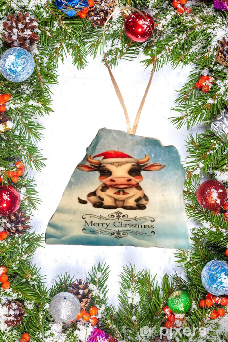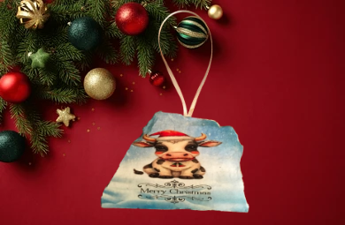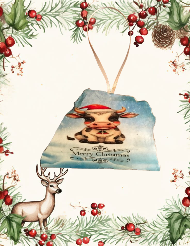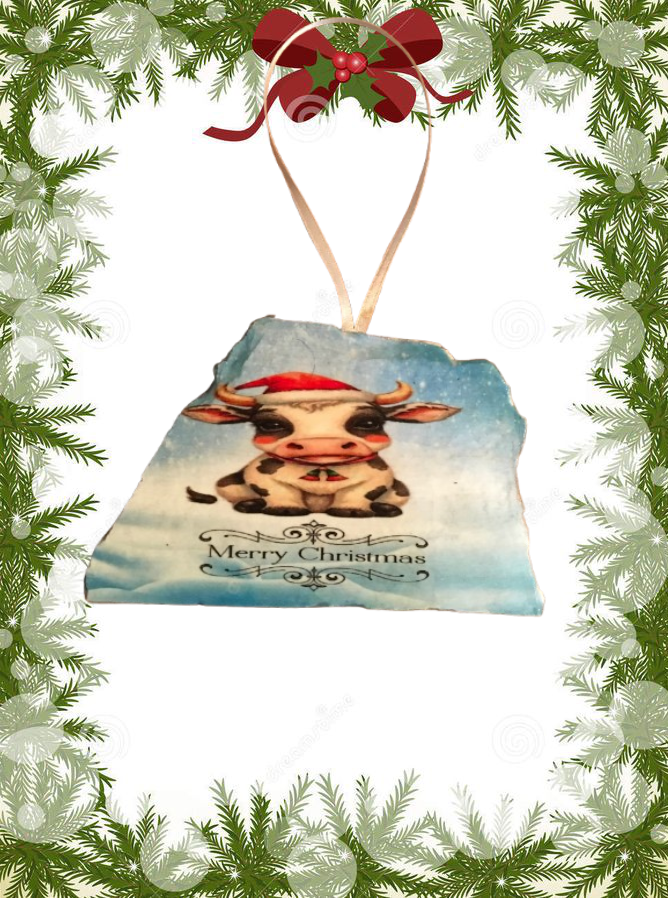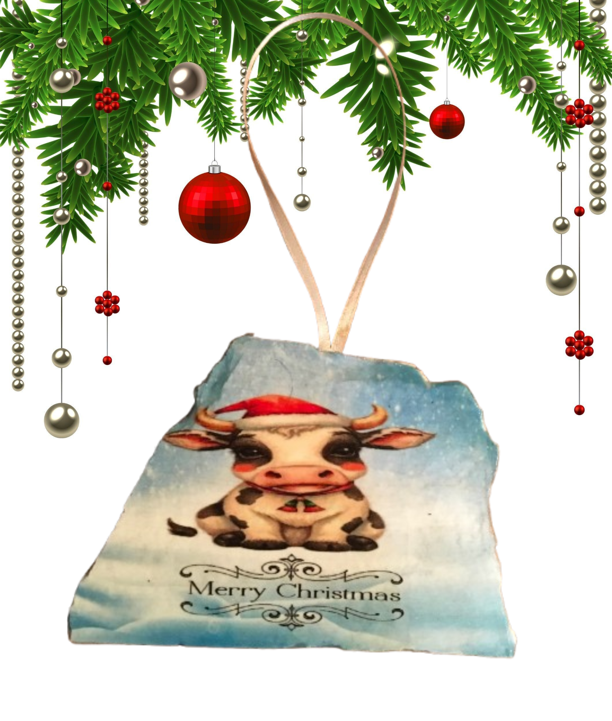 Antique West Virginia Roof Decoupaged Christmas Ornament - COW TWO BELLS MERRY CHRISTMAS - Handmade Holiday Tree Decor Unique Country Farmhouse House Decor Gift