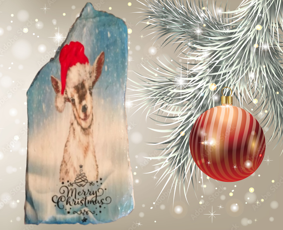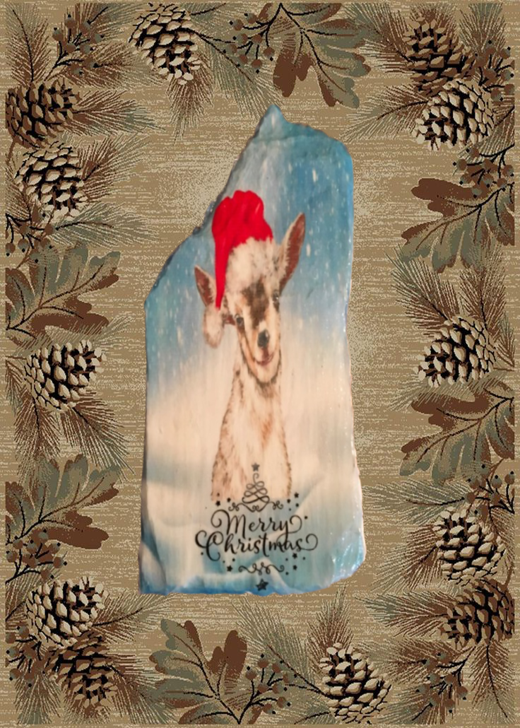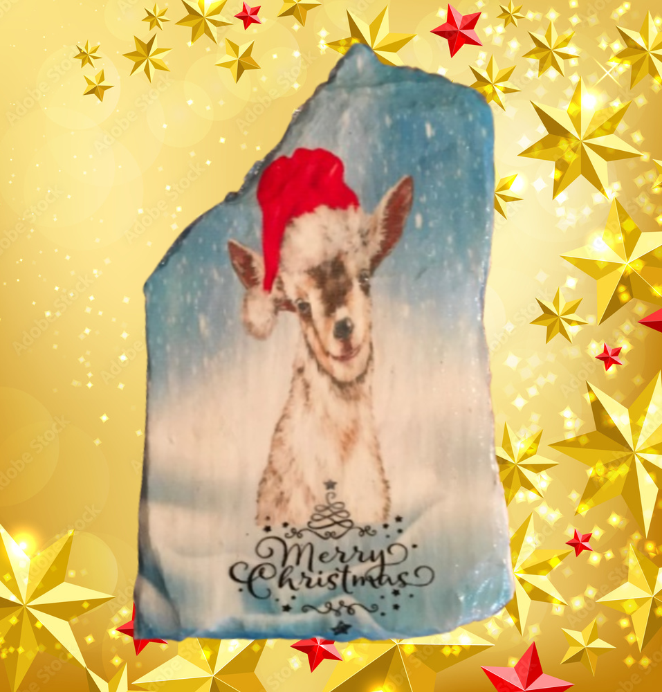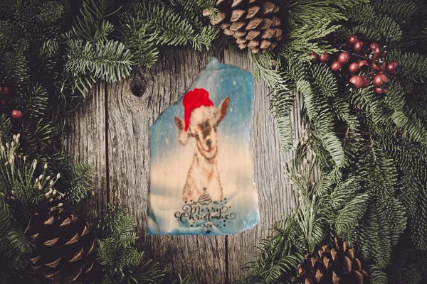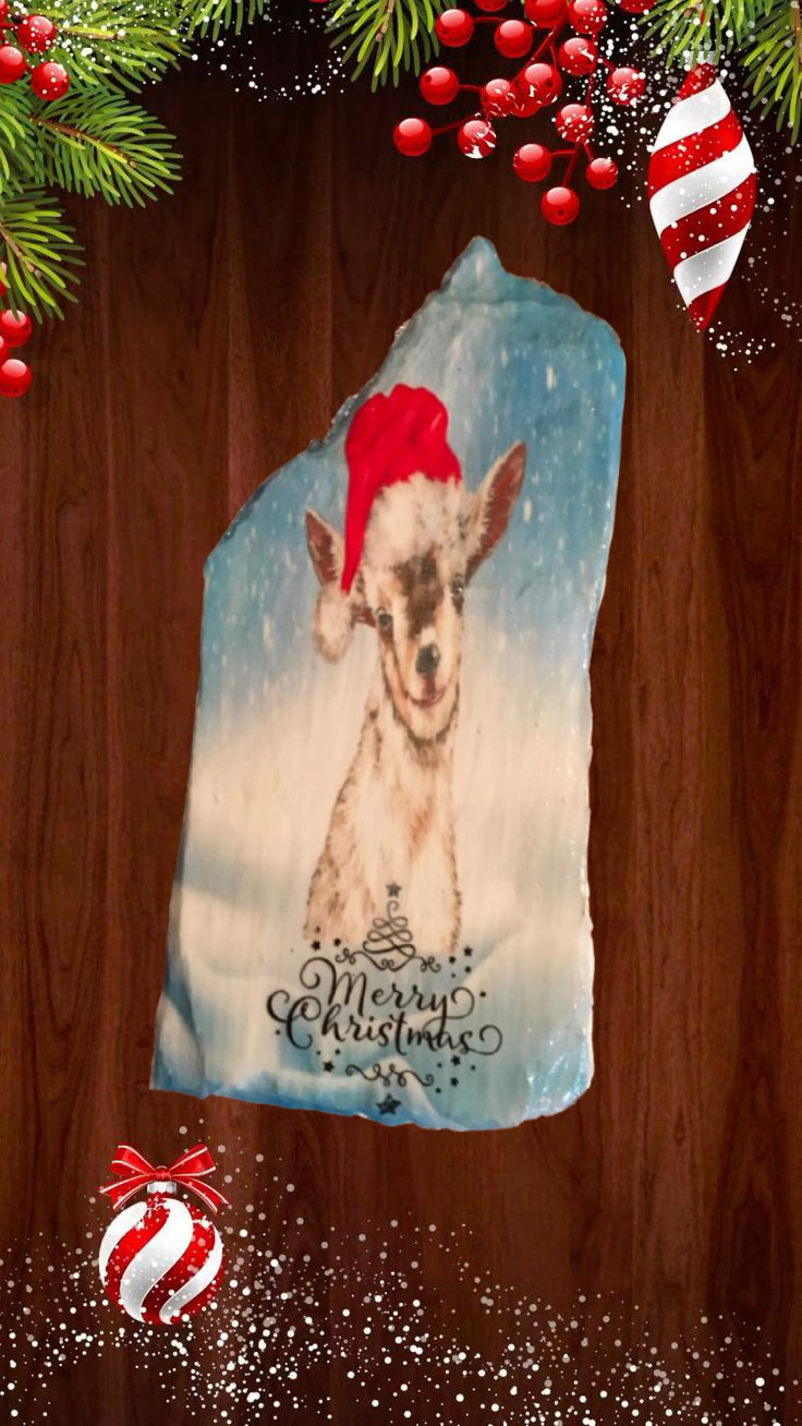 Antique West Virginia Roof Decoupaged GOAT MERRY CHRISTMAS Handmade Wall Art Unique Holiday Decoration Country Farmhouse Decor Gift - JAMsCraftCloset
