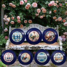 PLATE CHARGER NAVY BLUE PLASTIC ROUND DECOUPAGED Upcycled Repurposed Wall Art or Shelf Sitter RED WHITE BLUE 4TH OF JULY Decor Kitchen Decor Home Decor Wall Art Gift WEDDING - JAMsCraftCloset