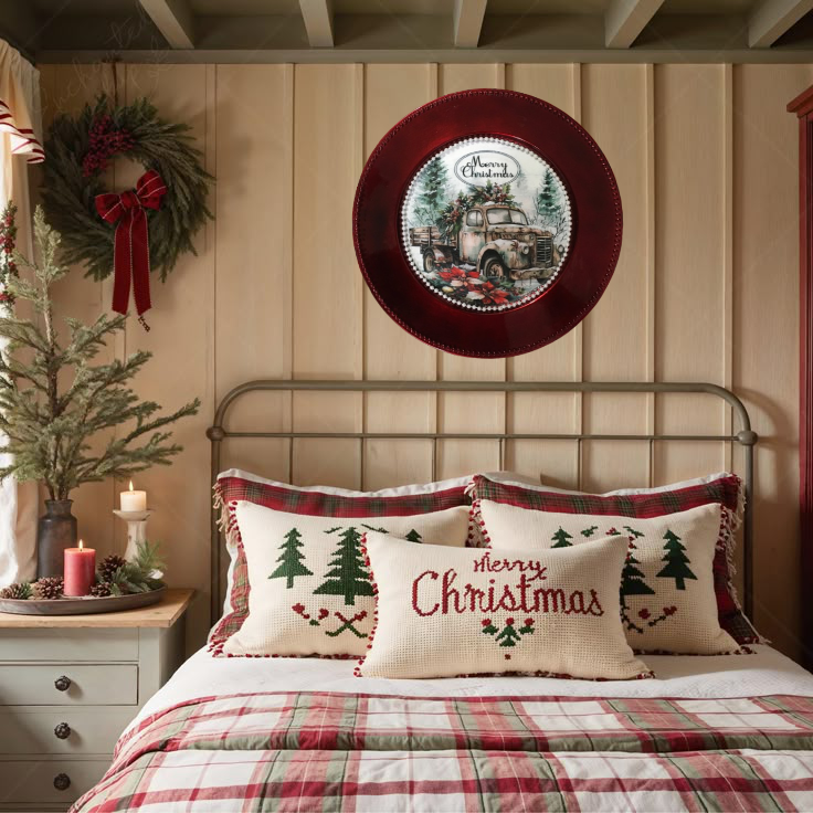 Ruby Red CHARGER PLATE Christmas Holiday Wall Art OLD TRUCK MERRY CHRISTMAS Country Farmhouse Home Holiday Decor Handmade Decoupaged Gift Idea Crafters Delight - JAMsCraftCloset
