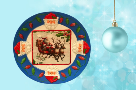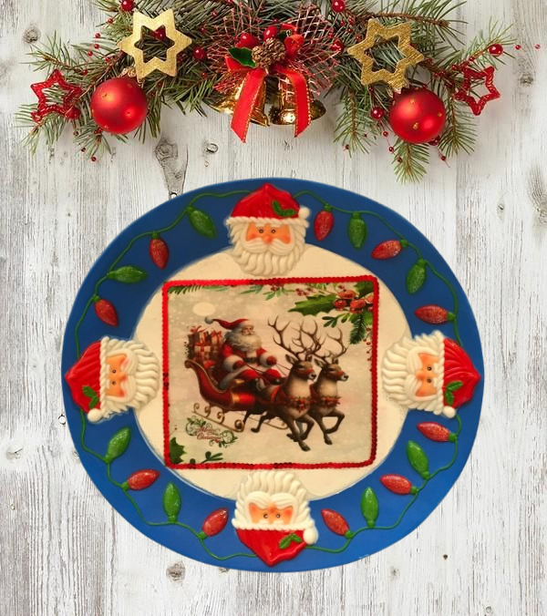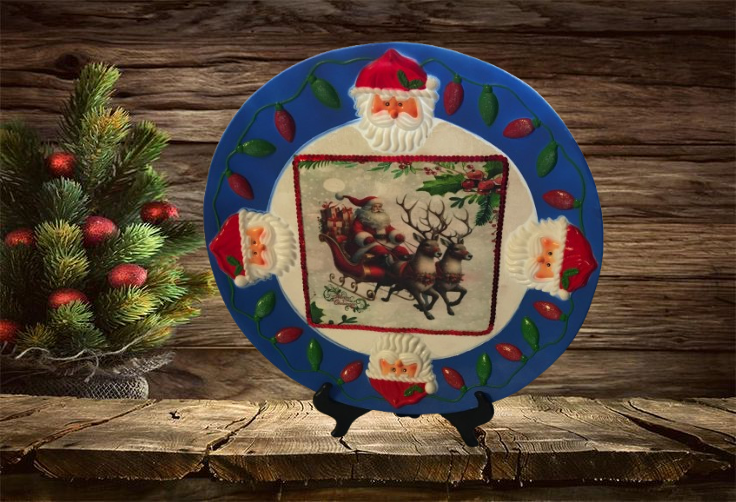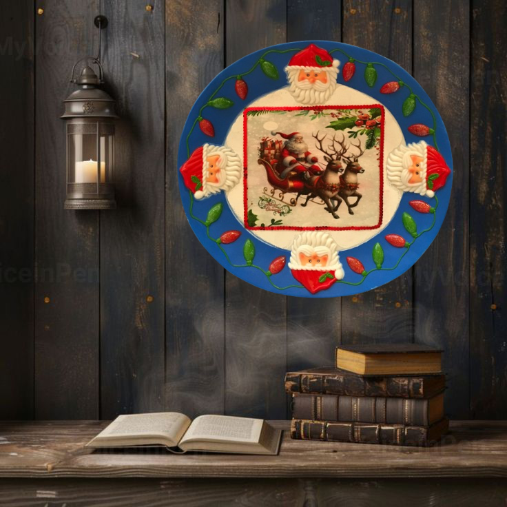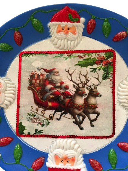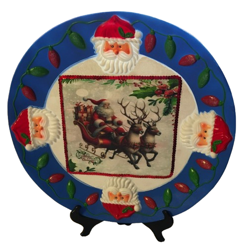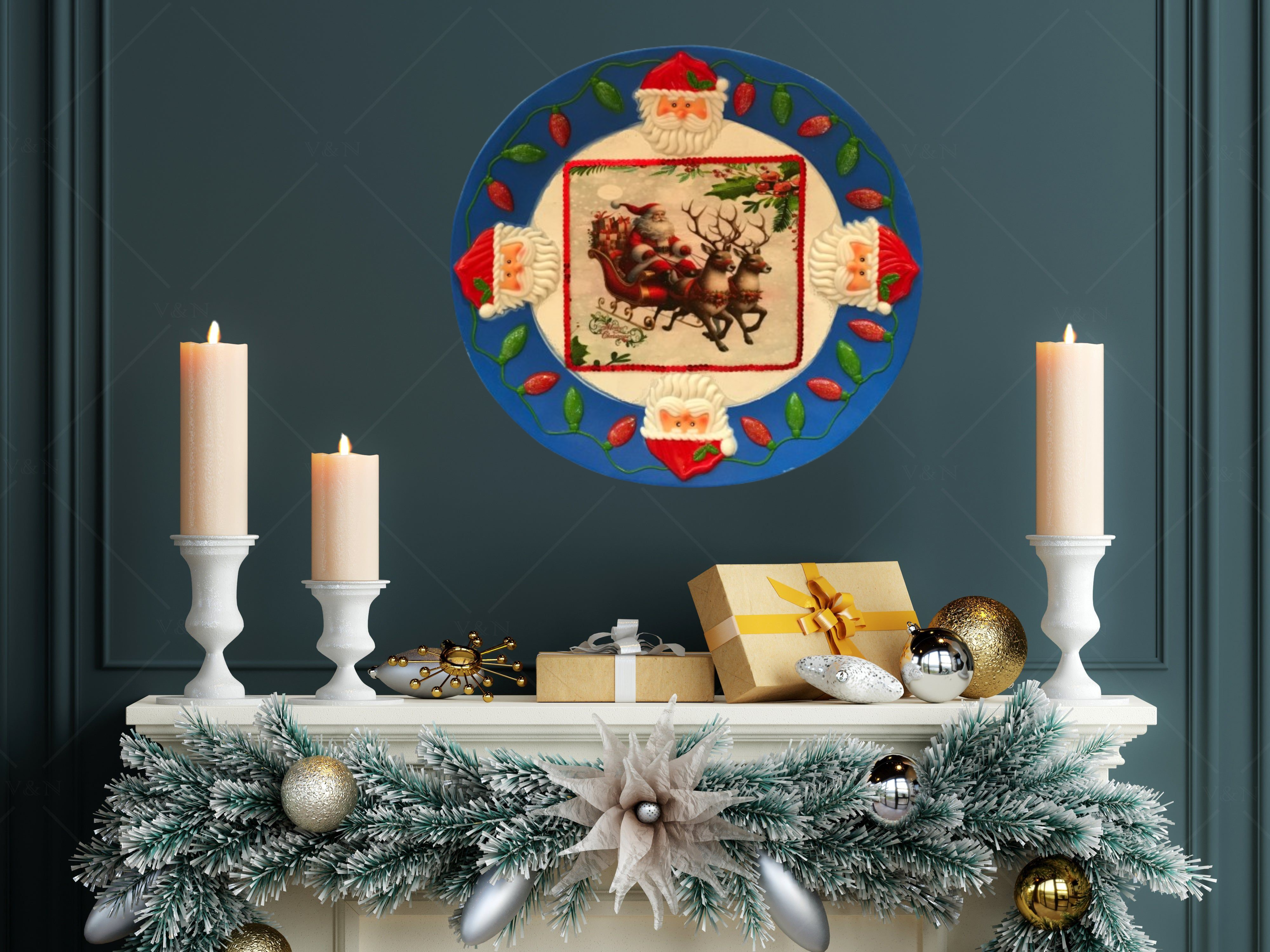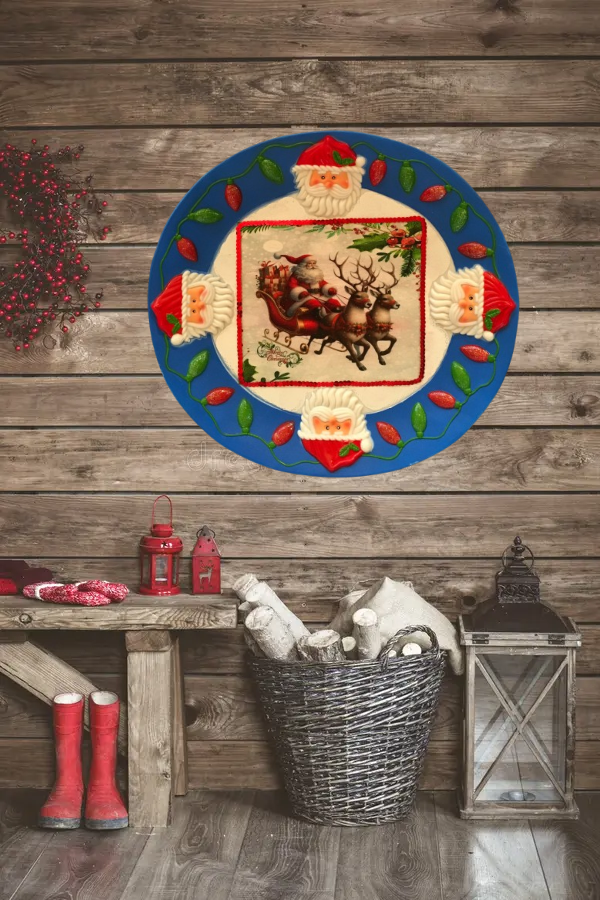 TRAY RED and GREEN SANTA OVAL SHAPED Plastic Decoupaged Upcycled Repurposed Christmas Theme SANTA SLEIGH MERRY CHRISTMAS Wall Art Shelf Sitter Decor Gift