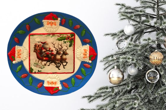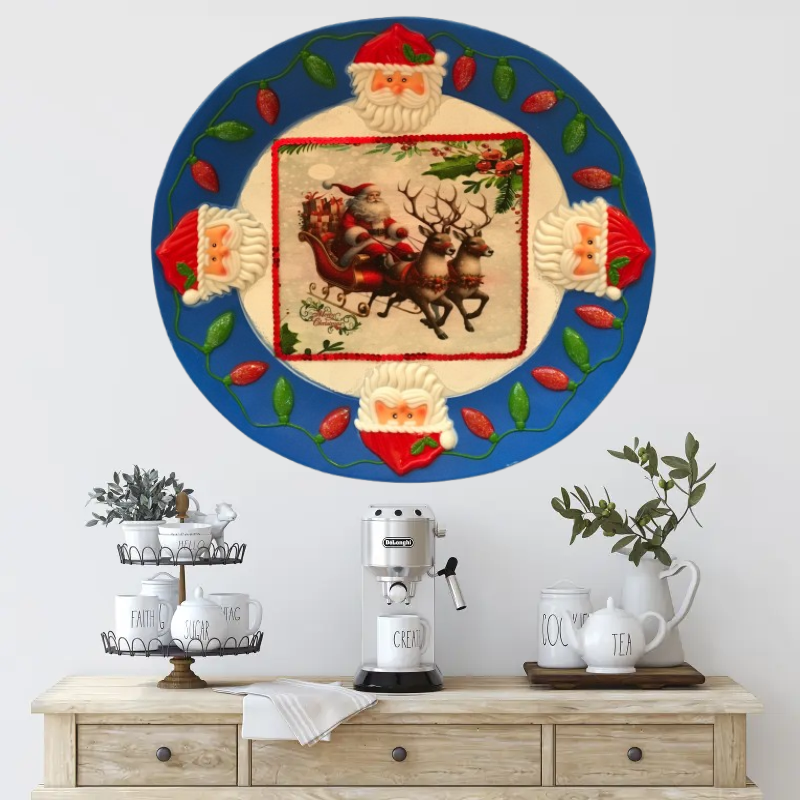 TRAY RED and GREEN SANTA OVAL SHAPED Plastic Decoupaged Upcycled Repurposed Christmas Theme SANTA SLEIGH MERRY CHRISTMAS Wall Art Shelf Sitter Decor Gift - JAMsCraftCloset