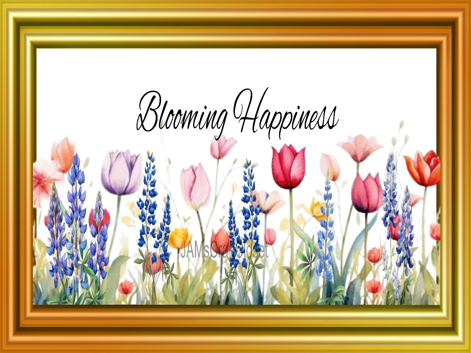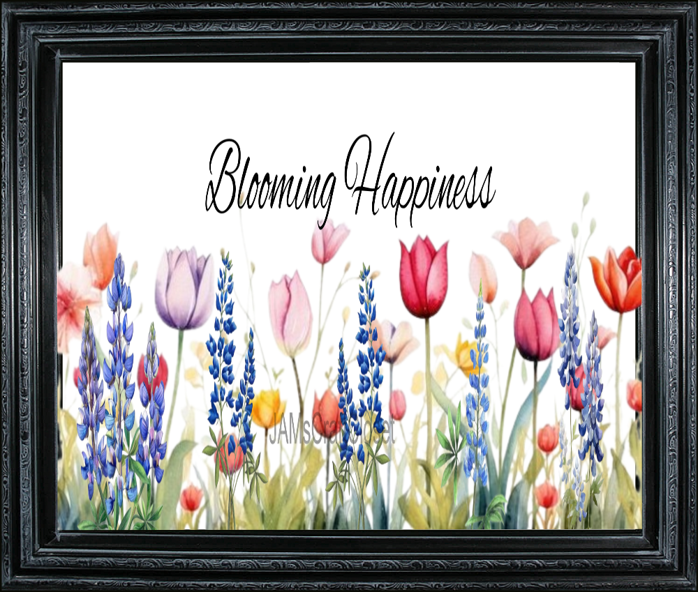 RECTANGLE SHAPED Digital Graphic Design BLOOMING HAPPINESS - TULIPS and BLUE LUPINE - PNG SVG Lake House Sign Farmhouse Country Home Cabin KITCHEN Wall Art Decor Wreath Design Gift Crafters Delight HAPPY CRAFTING - JAMsCraftCloset
