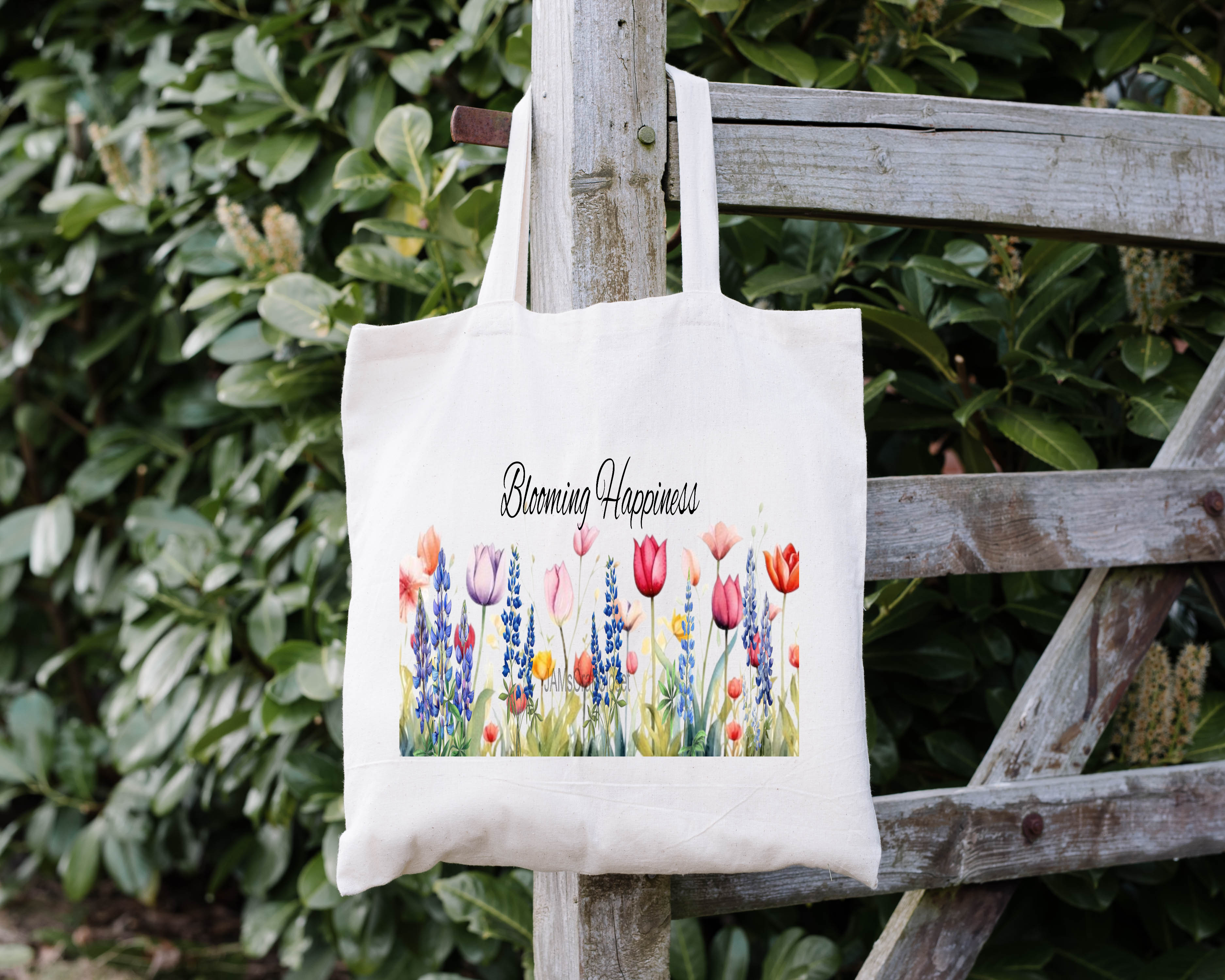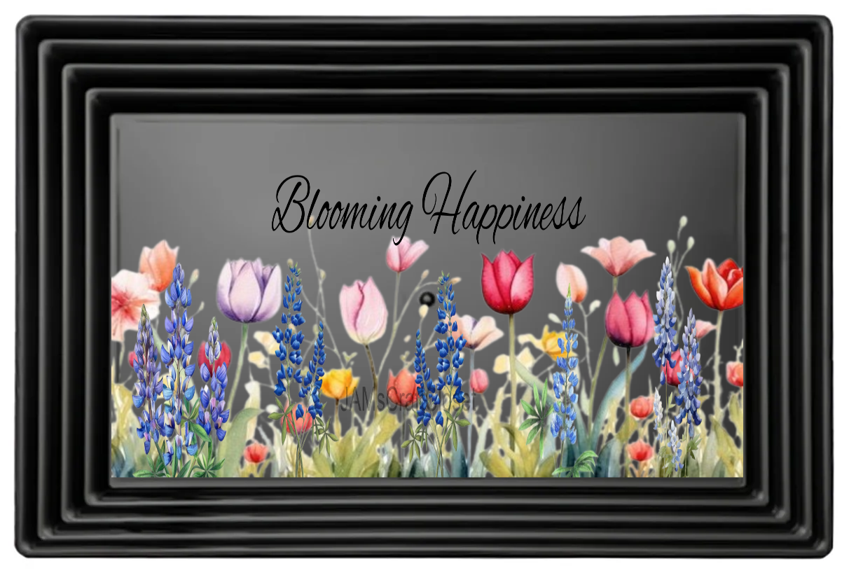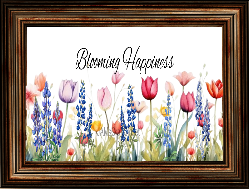 RECTANGLE SHAPED Digital Graphic Design BLOOMING HAPPINESS - TULIPS and BLUE LUPINE - PNG SVG Lake House Sign Farmhouse Country Home Cabin KITCHEN Wall Art Decor Wreath Design Gift Crafters Delight HAPPY CRAFTING