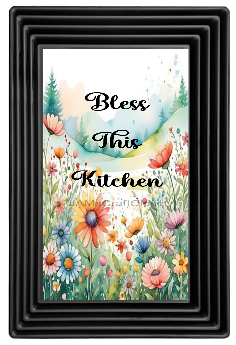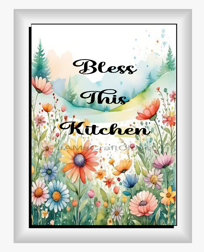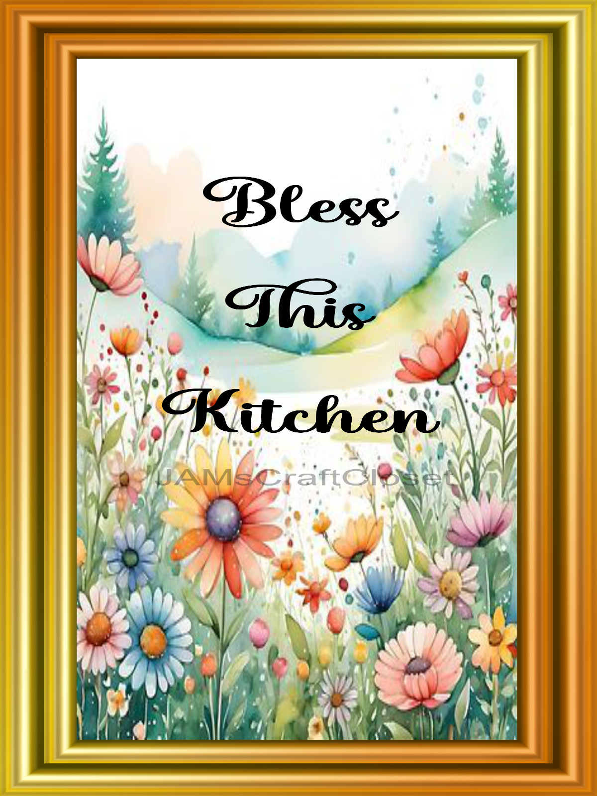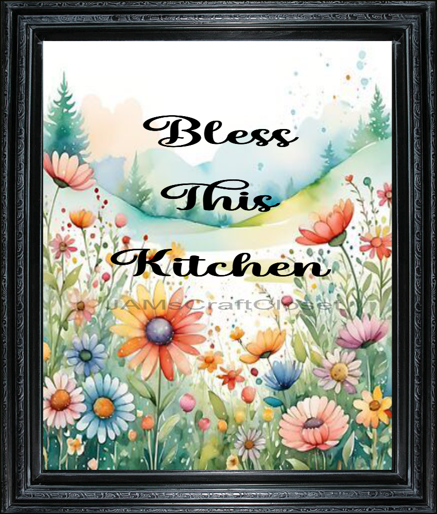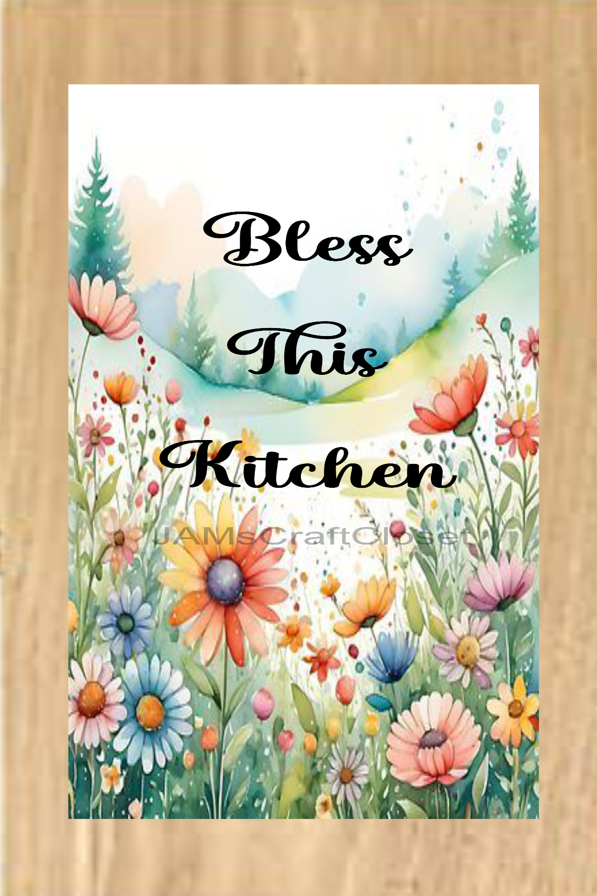 RECTANGLE SHAPED Digital Graphic Design Floral - BLESS THIS KITCHEN - PNG SVG Lake House Sign Farmhouse Country Home Cabin KITCHEN Wall Art Decor Chef Gift Crafters Delight - JAMsCraftCloset