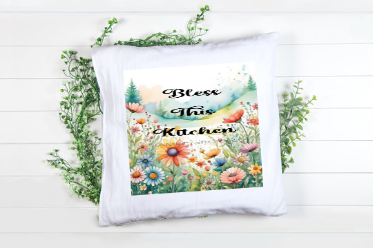RECTANGLE SHAPED Digital Graphic Design Floral - BLESS THIS KITCHEN - PNG SVG Lake House Sign Farmhouse Country Home Cabin KITCHEN Wall Art Decor Chef Gift Crafters Delight