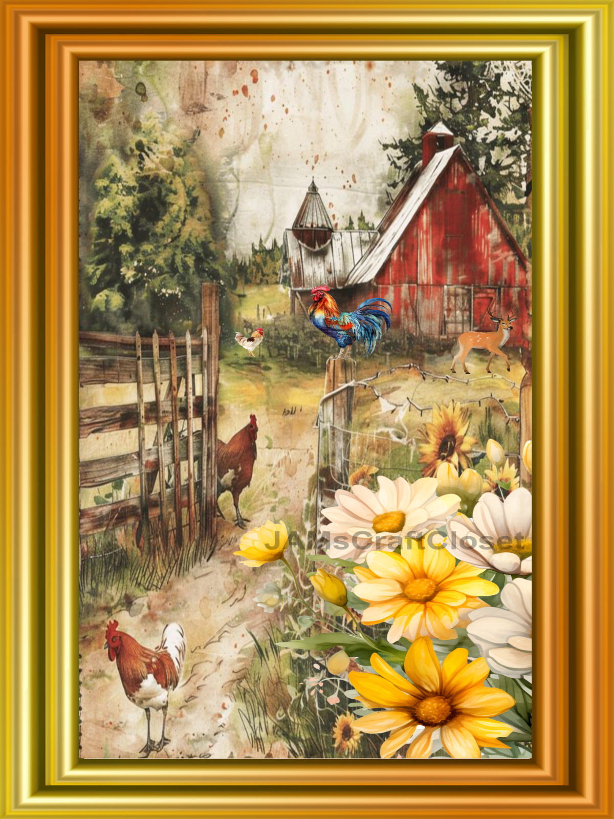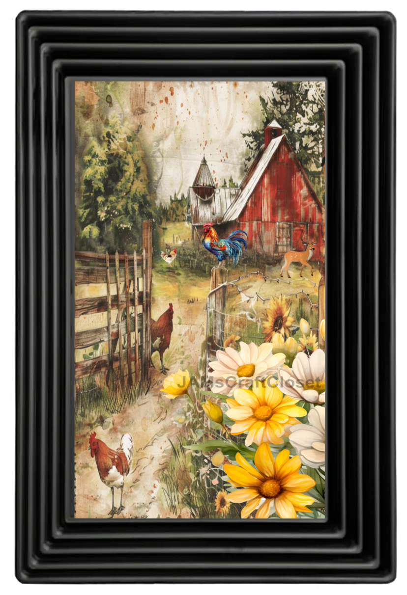 RECTANGLE SHAPED Digital Graphic Design Floral - RED BARN DASIES AND CHICKENS - PNG SVG Lake House Sign Farmhouse Country Home Cabin KITCHEN Wall Art Decor Chef Gift Crafters Delight - JAMsCraftCloset