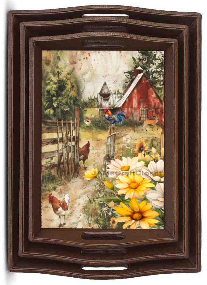 RECTANGLE SHAPED Digital Graphic Design Floral - RED BARN DASIES AND CHICKENS - PNG SVG Lake House Sign Farmhouse Country Home Cabin KITCHEN Wall Art Decor Chef Gift Crafters Delight