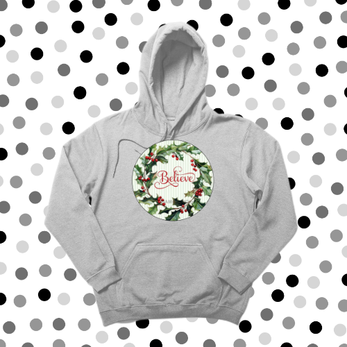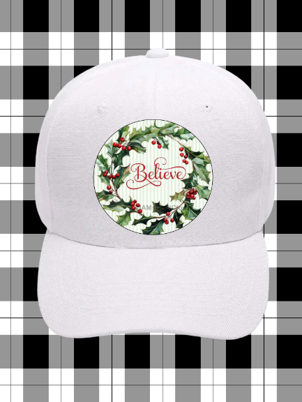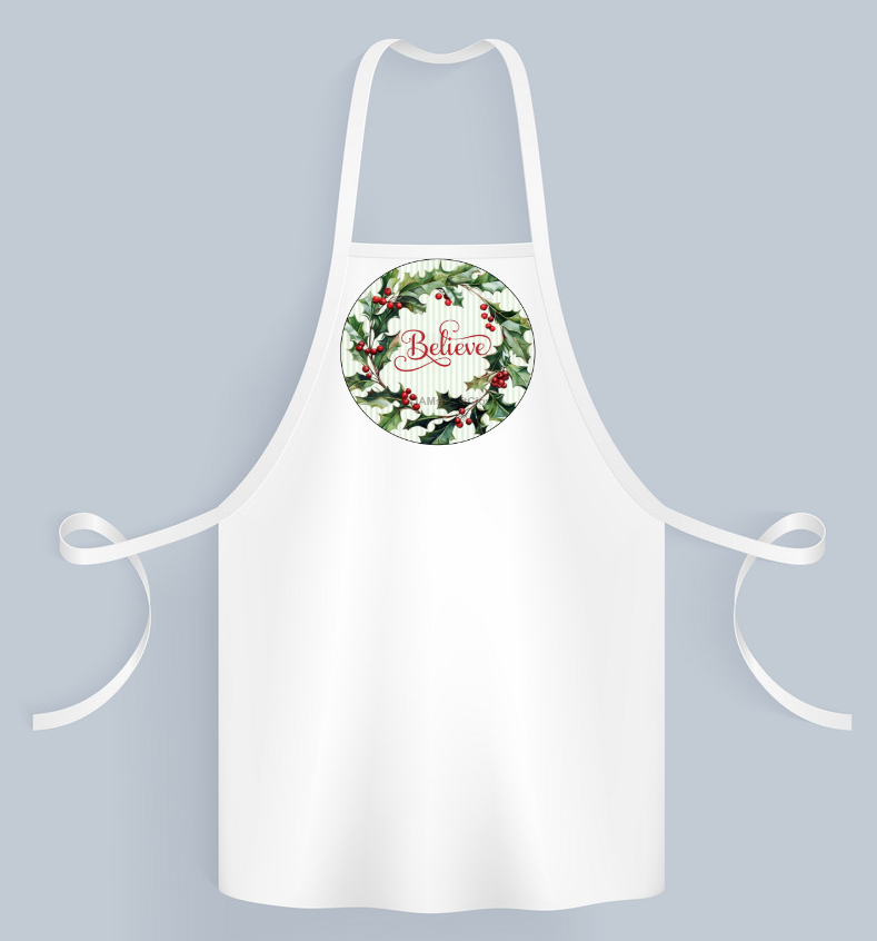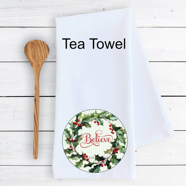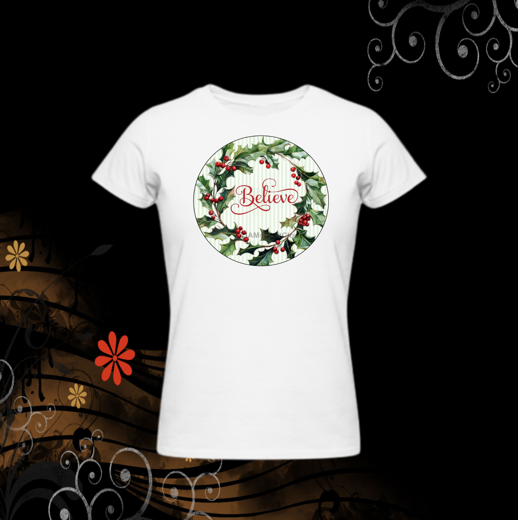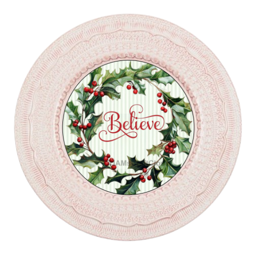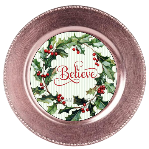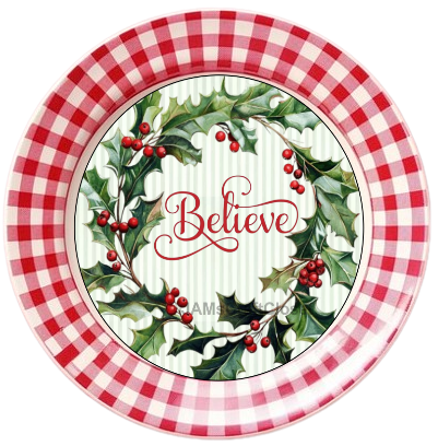 ROUND Digital Graphic Design BELIEVE Holly Berries Yellow Background - CHRISTMAS DESIGN PNG-JPEG-PDF-SVG-Decoupage-Sublimation Design Graphic Country Farmhouse Home Decor HOLIDAY Decor Gift Crafters Delight