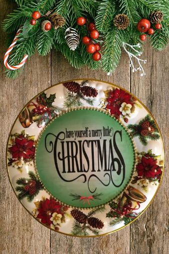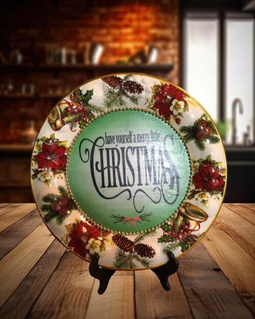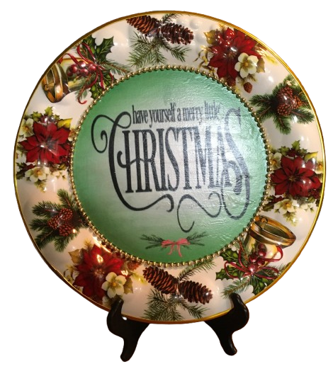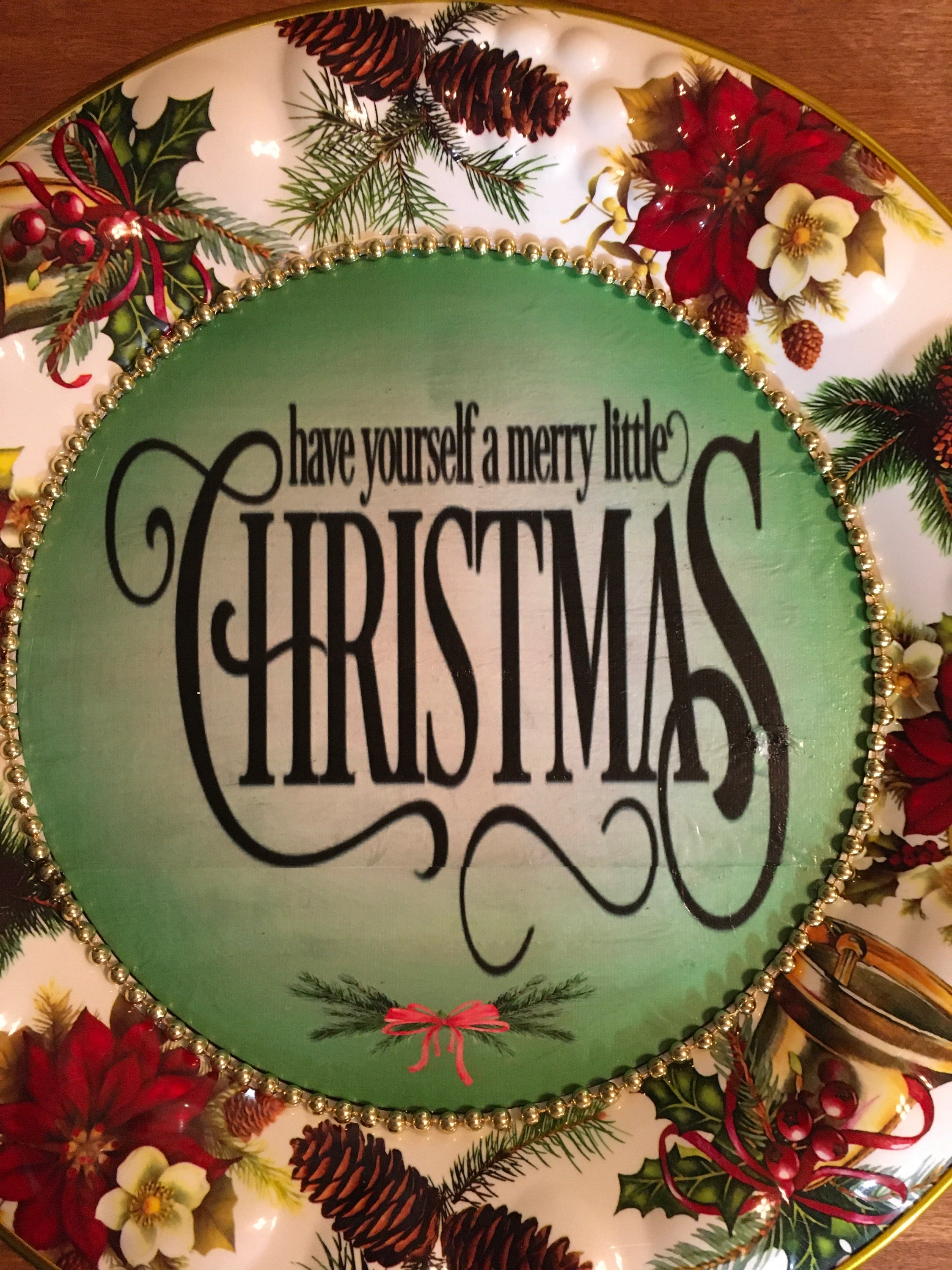 TRAY RED, WHITE, and GREEN ROUND SHAPED Embossed Poinsettias Plastic Decoupaged Upcycled Repurposed Christmas Theme HAVE YOURSELF A MERRY LITTLE CHRISTMAS Wall Art Shelf Sitter Decor Gift - JAMsCraftCloset