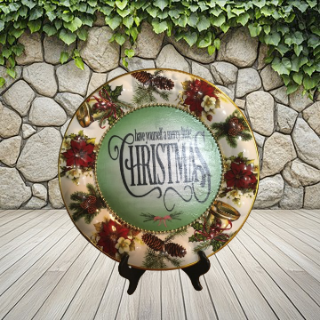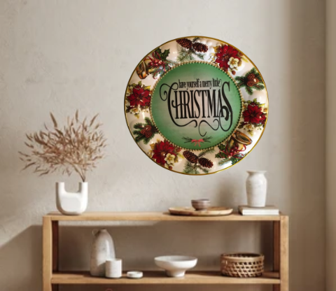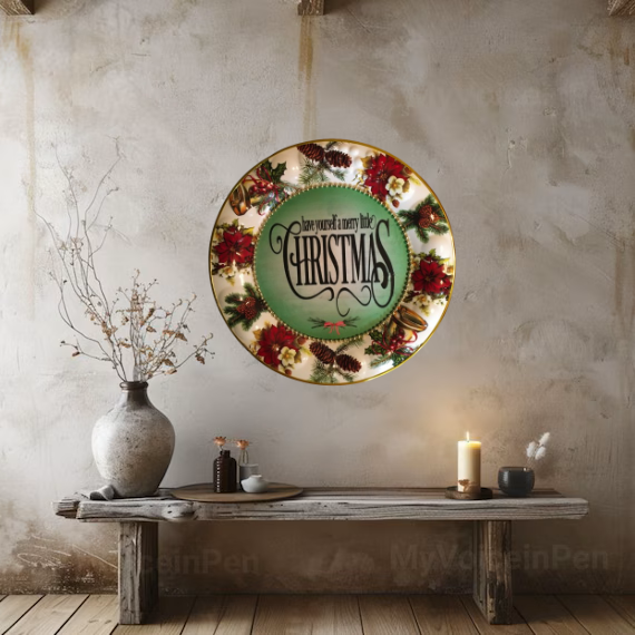 TRAY RED, WHITE, and GREEN ROUND SHAPED Embossed Poinsettias Plastic Decoupaged Upcycled Repurposed Christmas Theme HAVE YOURSELF A MERRY LITTLE CHRISTMAS Wall Art Shelf Sitter Decor Gift