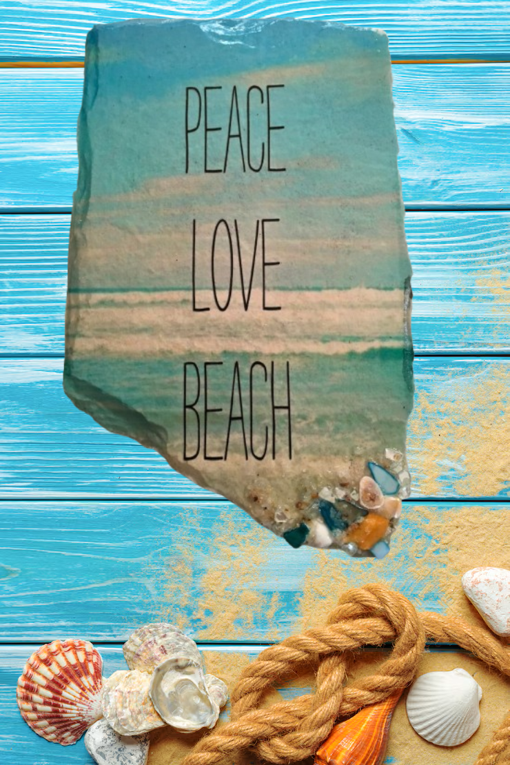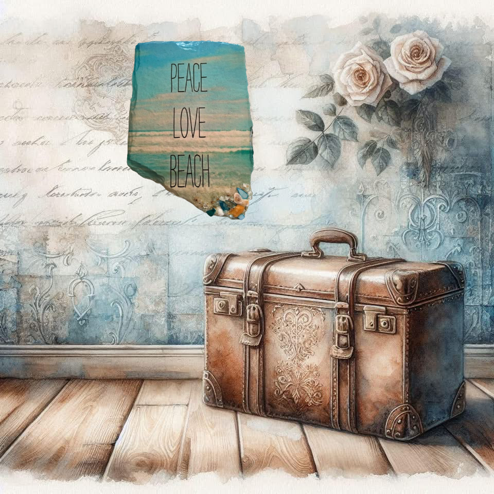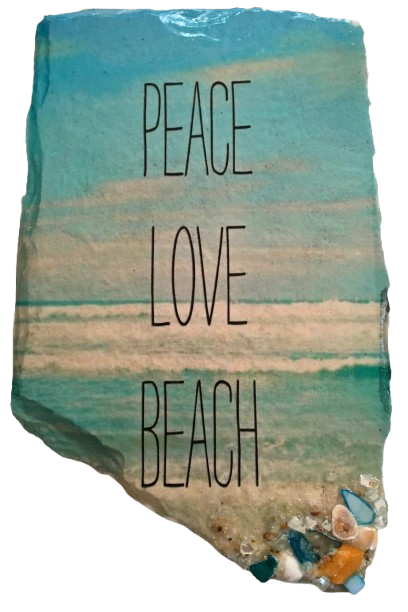Antique West Virginia Roof Decoupaged PEACE LOVE BEACH - Beach Theme 3-D Embellishments Shells and Sand Handmade Wall Art Unique Beach Lake House Gift- JAMsCraftCloset