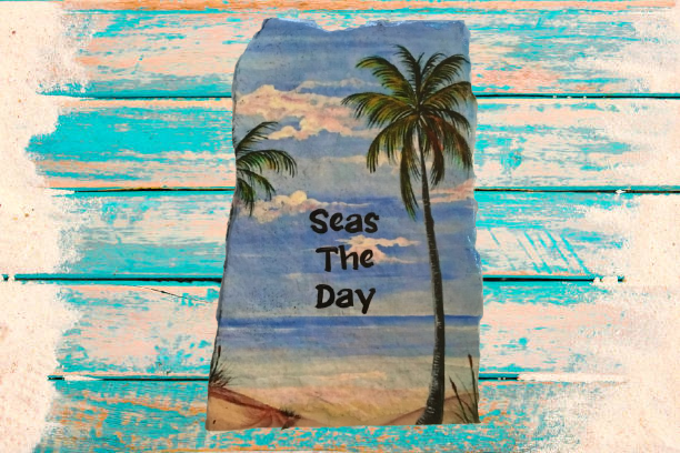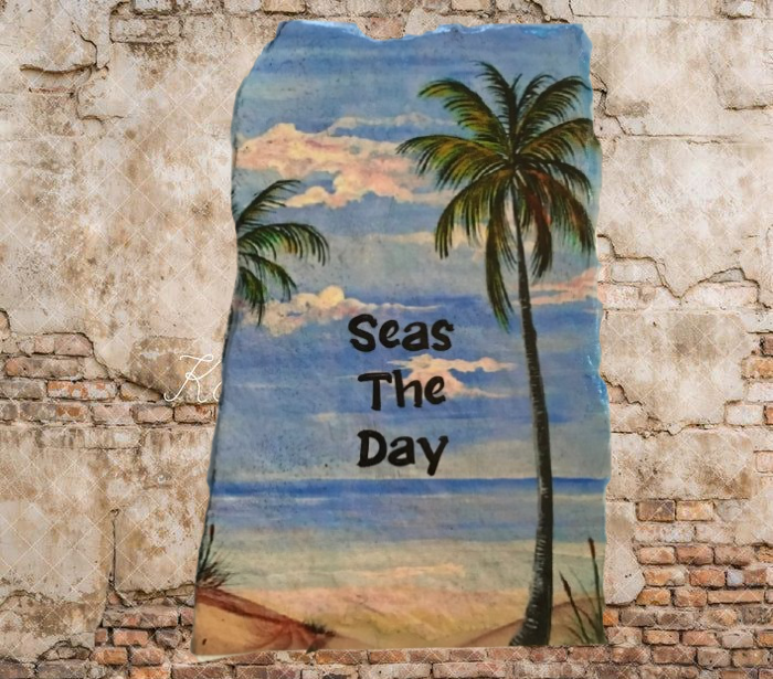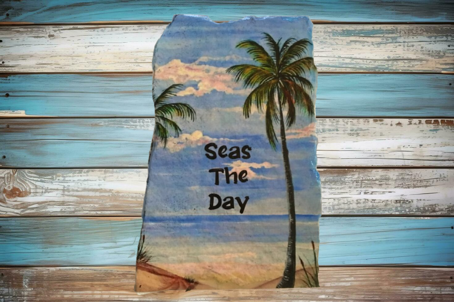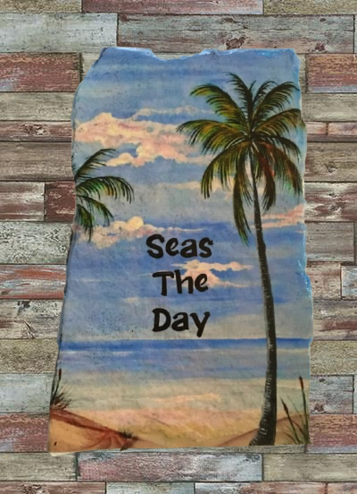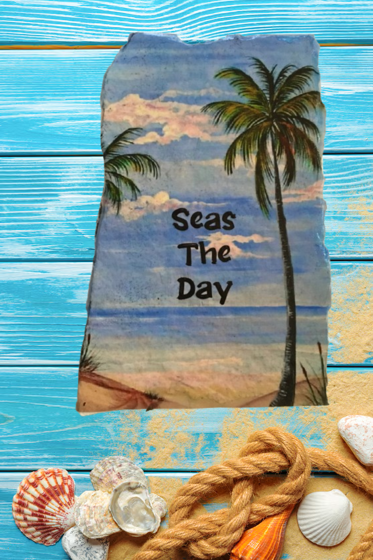 Antique West Virginia Roof Decoupaged SEAS THE DAY Beach Theme Handmade Wall Art Unique Beach Lake House Gift - JAMsCraftCloset