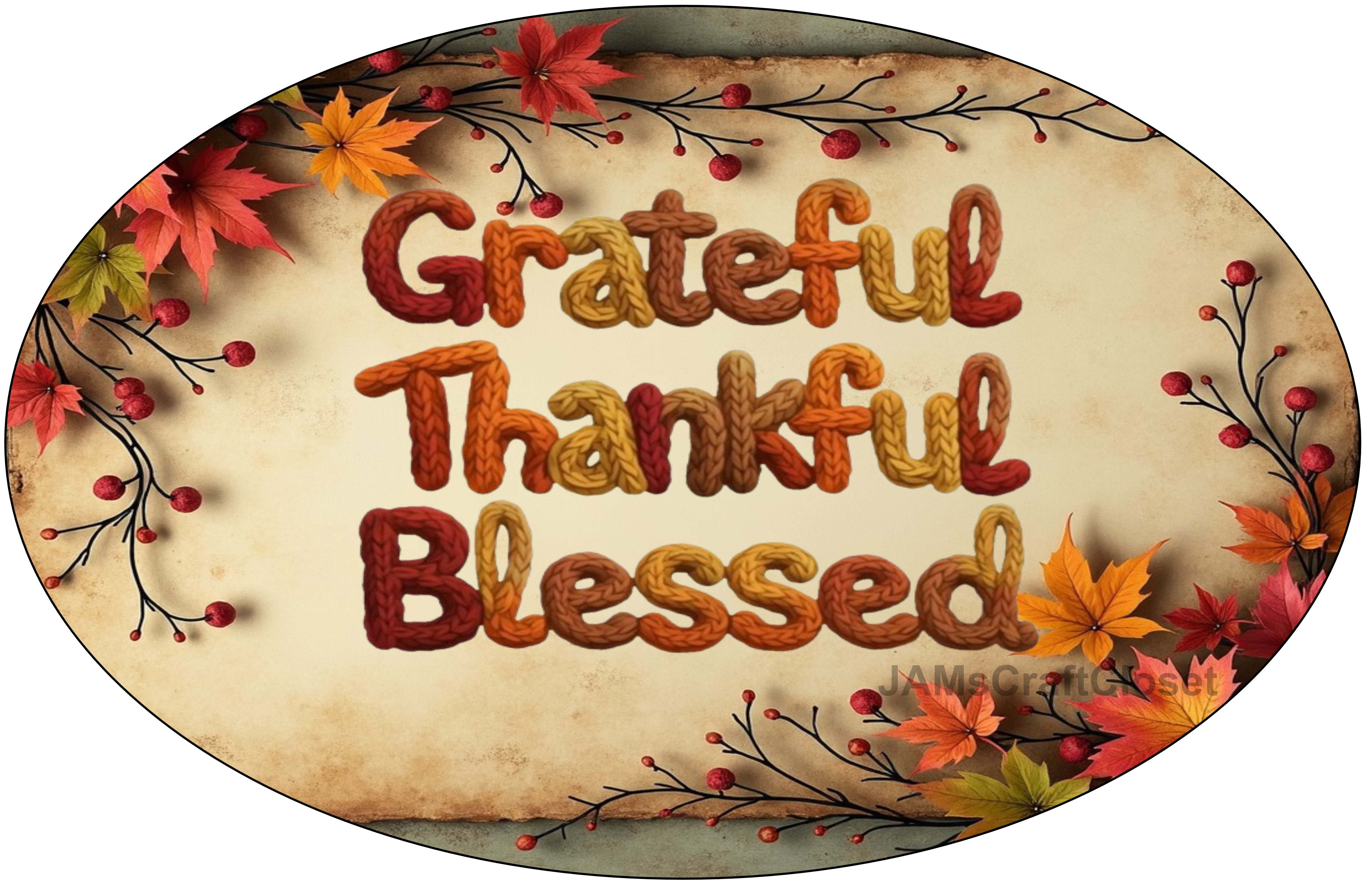 OVAL SHAPED Digital Graphic Design GRATEFUL THANKFUL BLESSED FALL THEME Sublimation Decoupage PNG SVG Farmhouse Country Home Cabin Wall Art Shelf Sitter Decor Gift Crafters Delight - JAMsCraftCloset