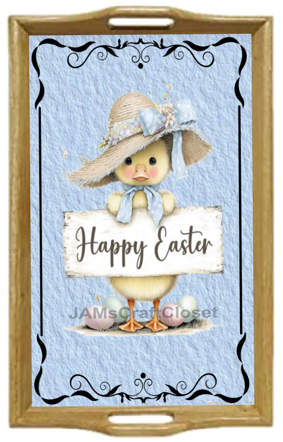 RECTANGLE SHAPED Digital Graphic Design CERAMIC TILE Easter CHICK IN BONNET WITH SIGN - PNG SVG PDF JPEG Farmhouse Country Home HOLIDAY Wall Art Shelf Sitter Decor Gift Crafters Delight