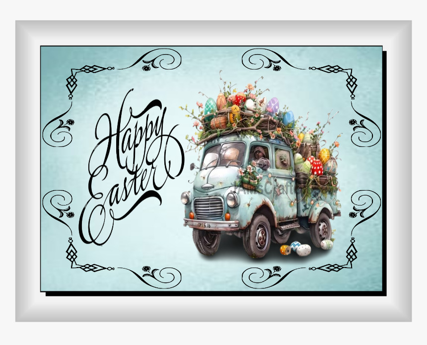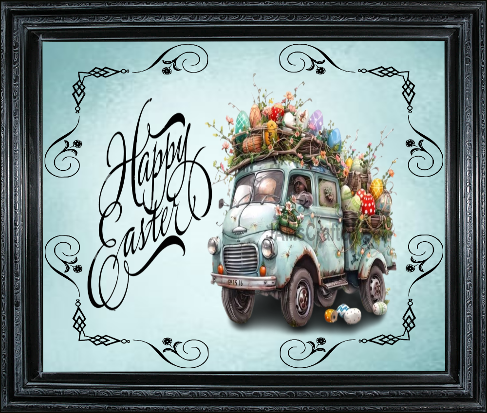 RECTANGLE SHAPED Digital Graphic Design CERAMIC TILE Easter TRUCK FILLED WITH EGGS - PNG SVG PDF JPEG Farmhouse Country Home HOLIDAY Wall Art Shelf Sitter Decor Gift Crafters Delight