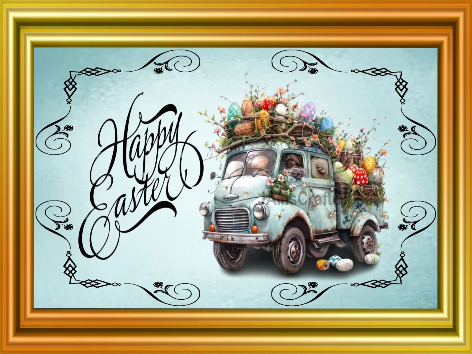 RECTANGLE SHAPED Digital Graphic Design CERAMIC TILE Easter TRUCK FILLED WITH EGGS - PNG SVG PDF JPEG Farmhouse Country Home HOLIDAY Wall Art Shelf Sitter Decor Gift Crafters Delight - JAMsCraftCloset