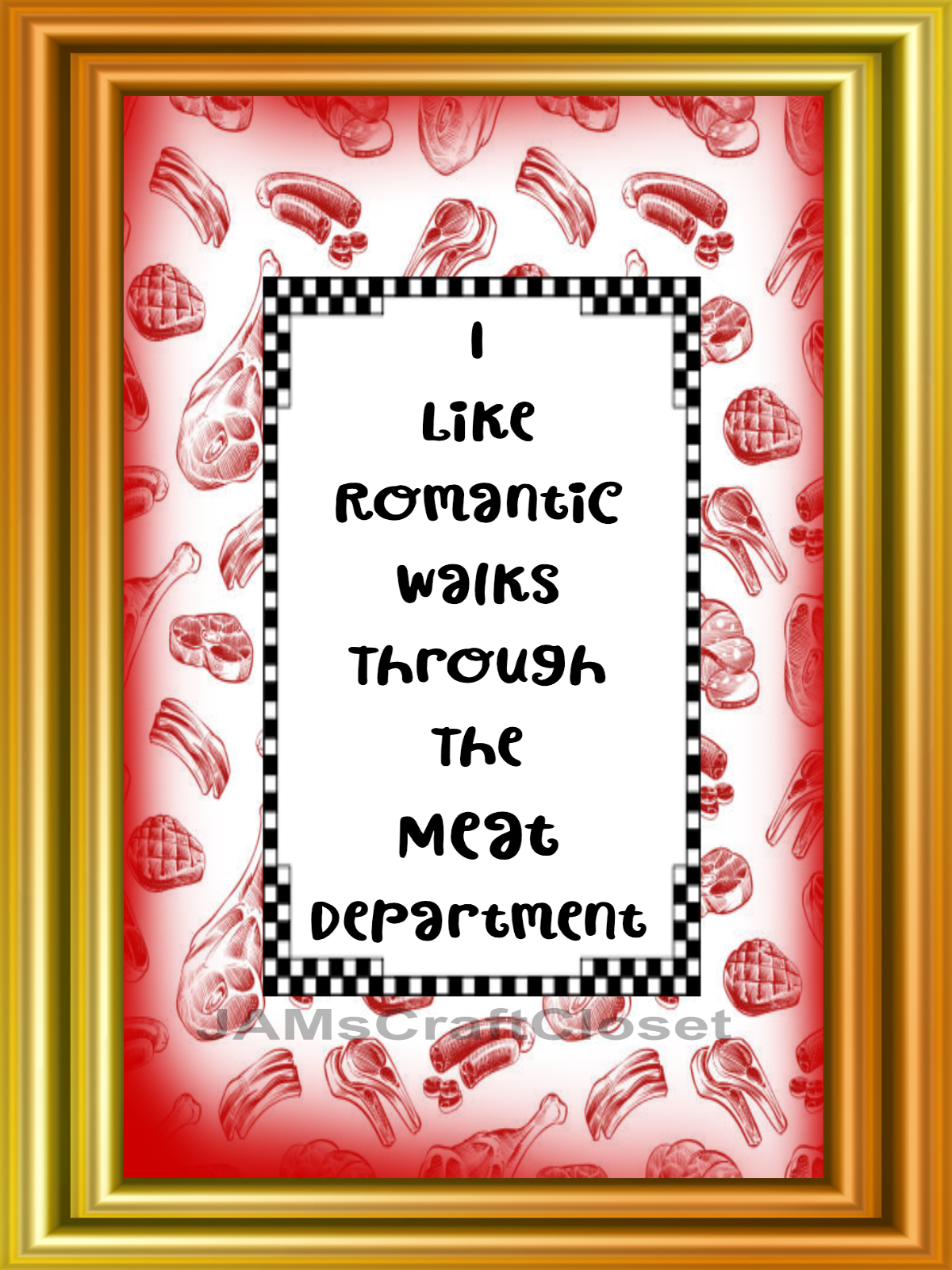 RECTANGLE SHAPED Digital Graphic Design I LIKE ROMANTIC WALKS IN THE MEAT DEPARTMENT - PNG SVG Lake House Sign Farmhouse Country Home Cabin KITCHEN Wall Art Decor Chef Butcher Produce Gift Crafters Delight